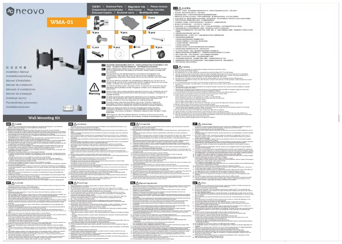 WMA-01 - Support mural AG Neovo - Notice d'utilisation et mode d'emploi gratuit