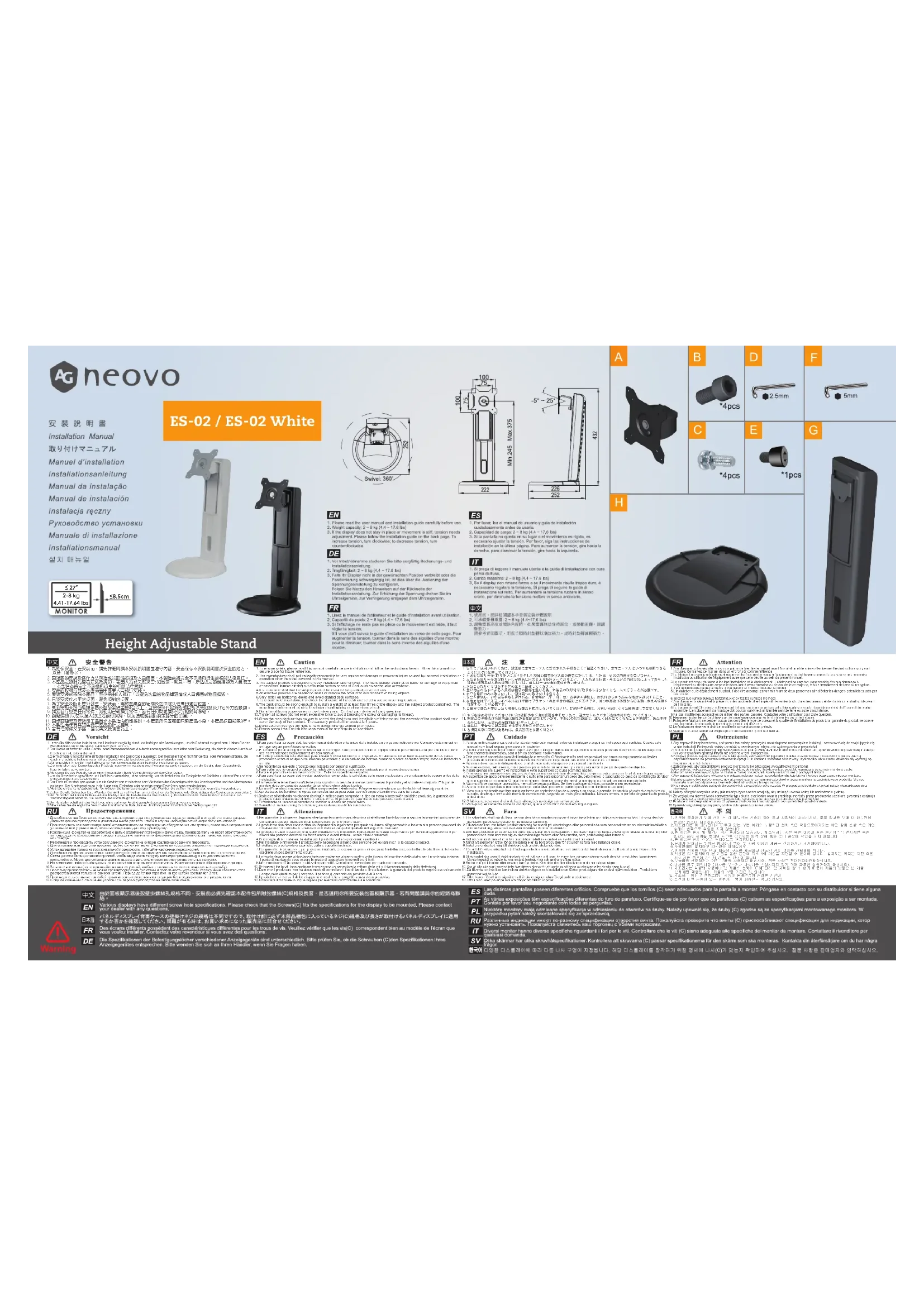 Retrouvez gratuitement la notice de l'appareil ES-02 AG Neovo au format PDF.