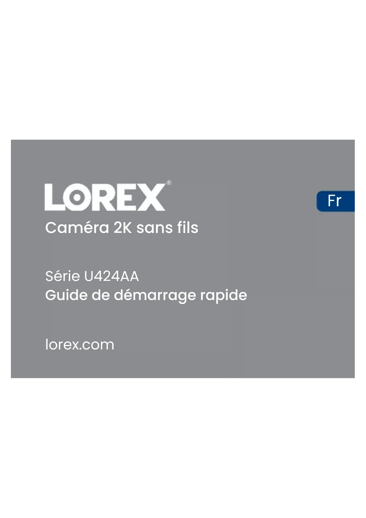 - Trouvez des conseils en matière de dépannage et des FAQ connexes U424AA-Series_QSG_TRILINGUAL_R1 Enregistrez votre produit Veuillez consulter nos conditions d’utilisation complètes et notre politique de garantie limitée du matériel sur le site lorex.com/warranty.Cámara 2K sin cables Guía de inicio rápido Serie U424AA lorex.com EsCómo empezar con su cámara 2K sin cables ¡Gracias por su compra!Descargo de responsabilidad