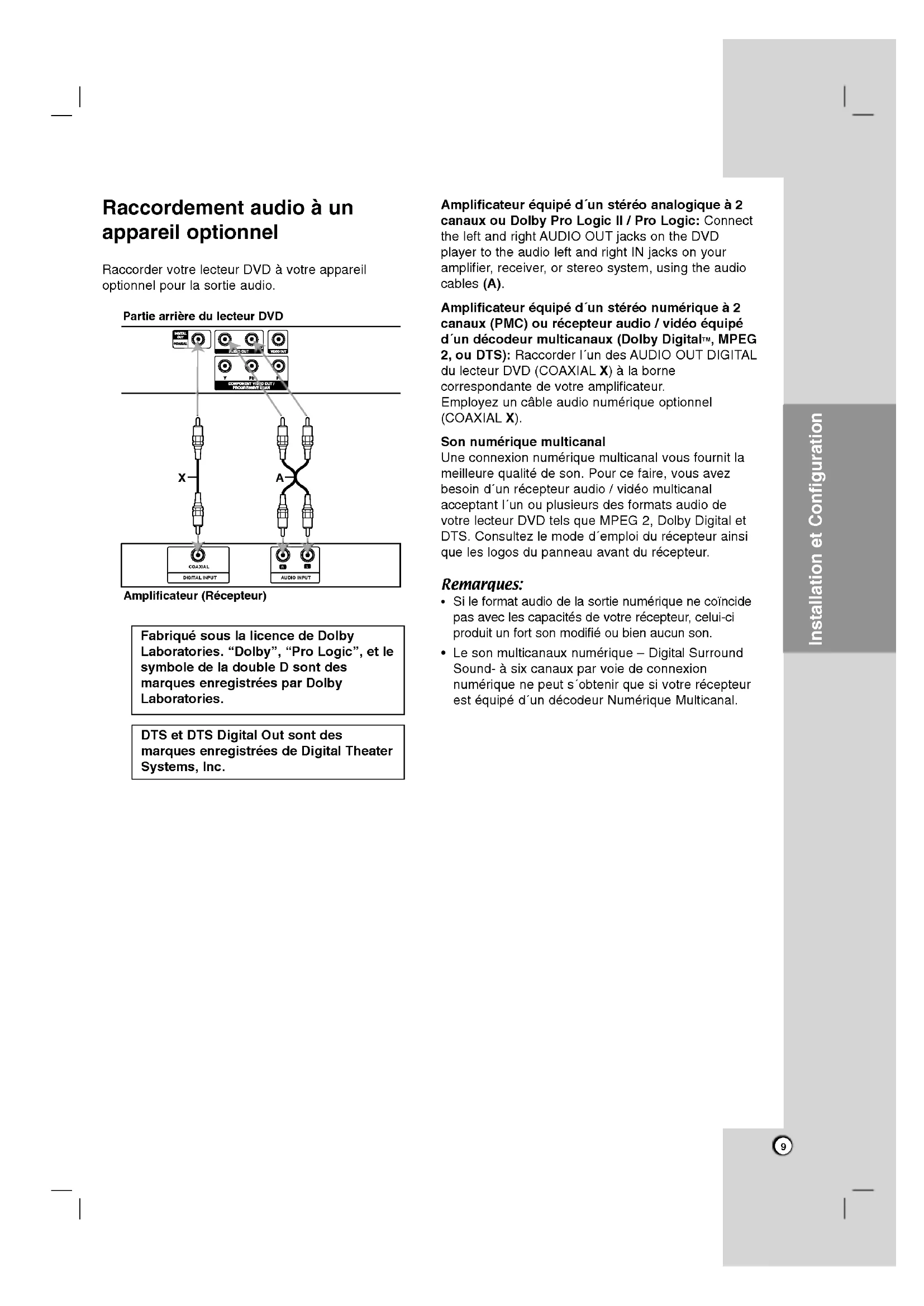 lecteur DVD9 Raccordement audio