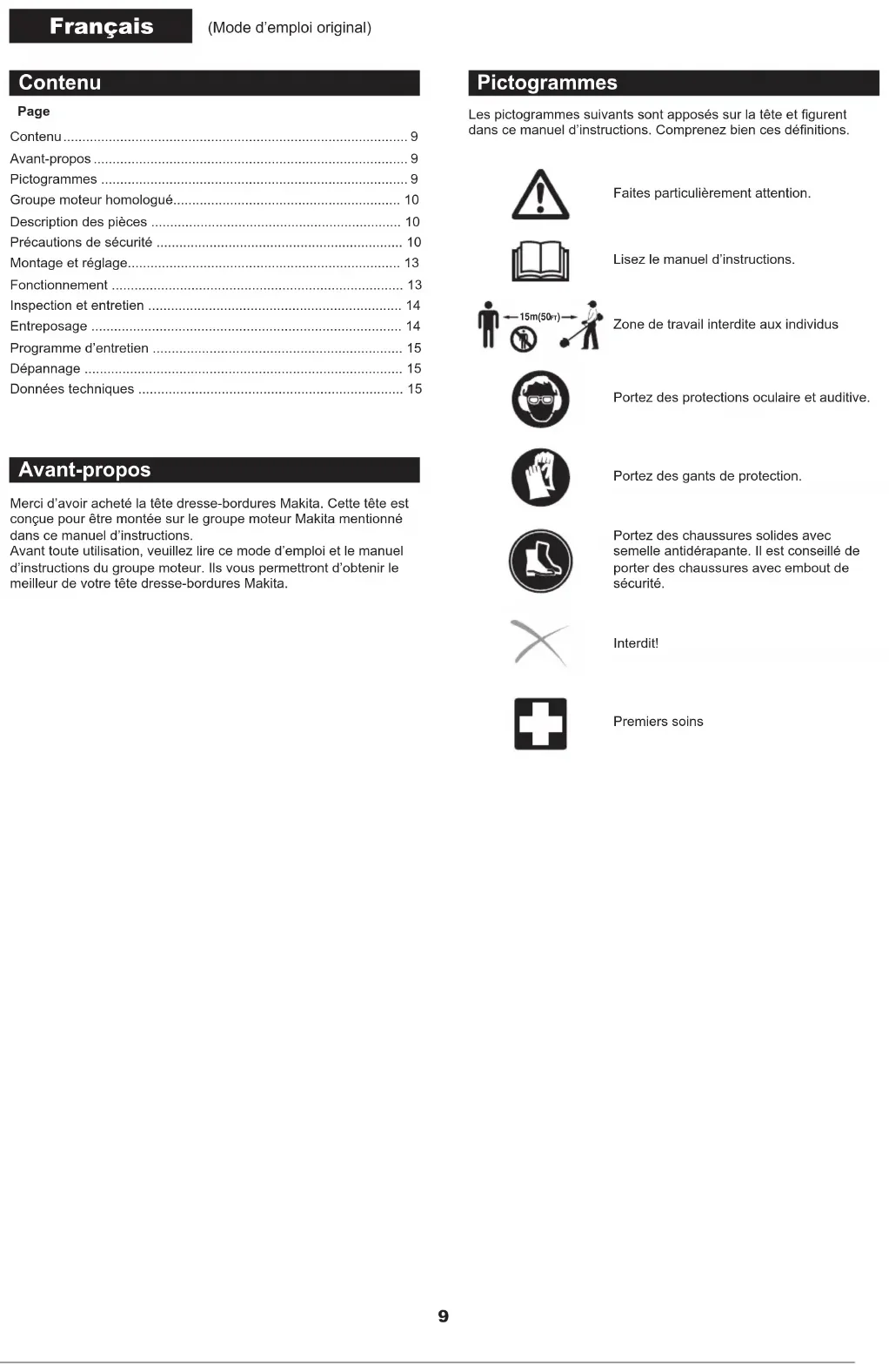 - Pictogrammes p. 9