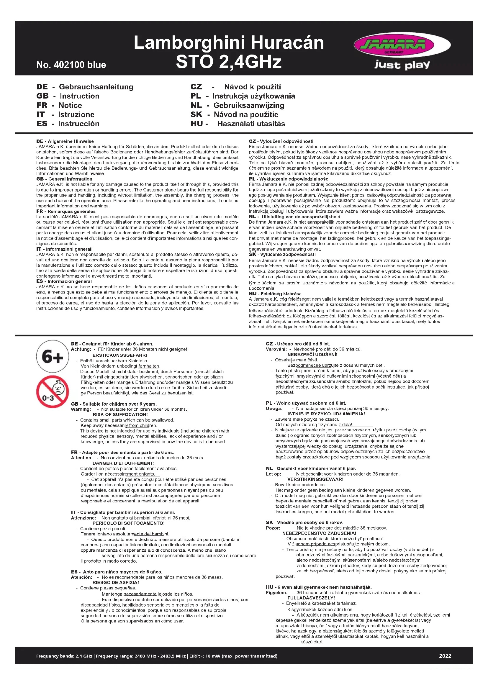 Téléchargez la notice de votre Jouet radiocommandé au format PDF gratuitement ! Retrouvez votre notice 402100 - Jamara et reprennez votre appareil électronique en main. Sur cette page sont publiés tous les documents nécessaires à l'utilisation de votre appareil 402100 de la marque Jamara.