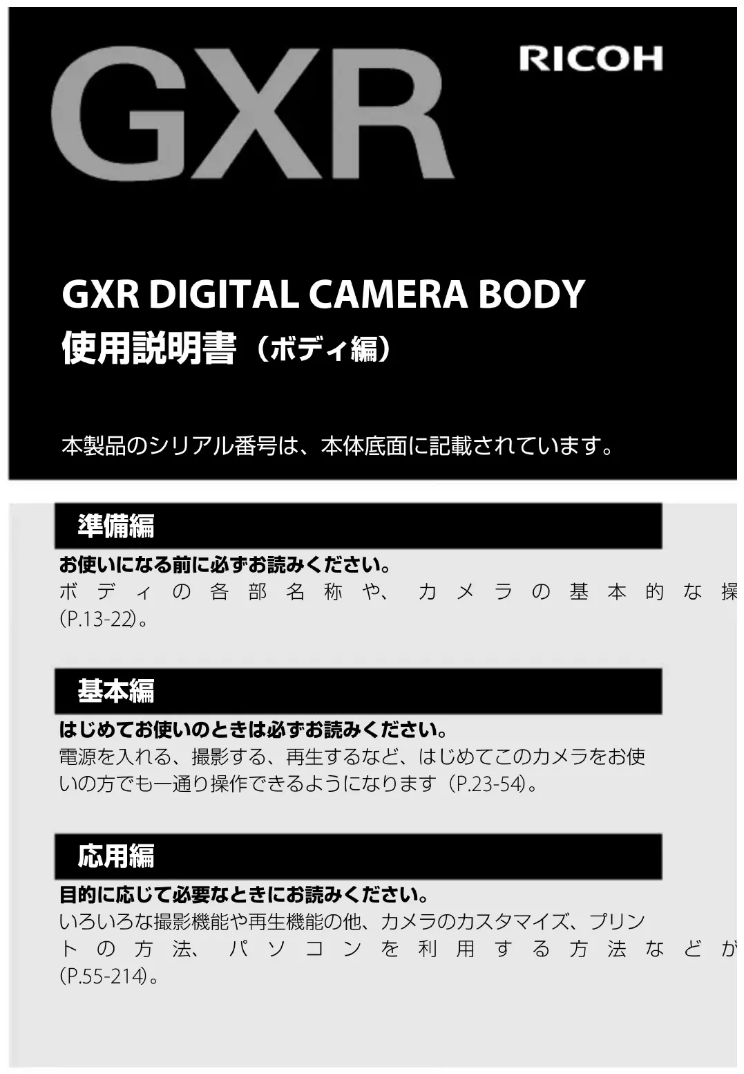 GXR - Appareil photo PENTAX - Notice d'utilisation et mode d'emploi gratuit