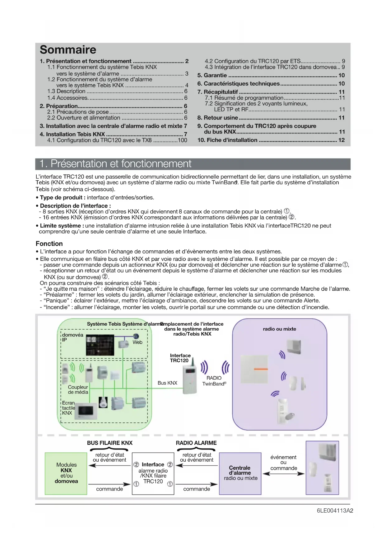 1.2 Fonctionnement du système d’alarme vers le système Tebis KNX6LE004113A5