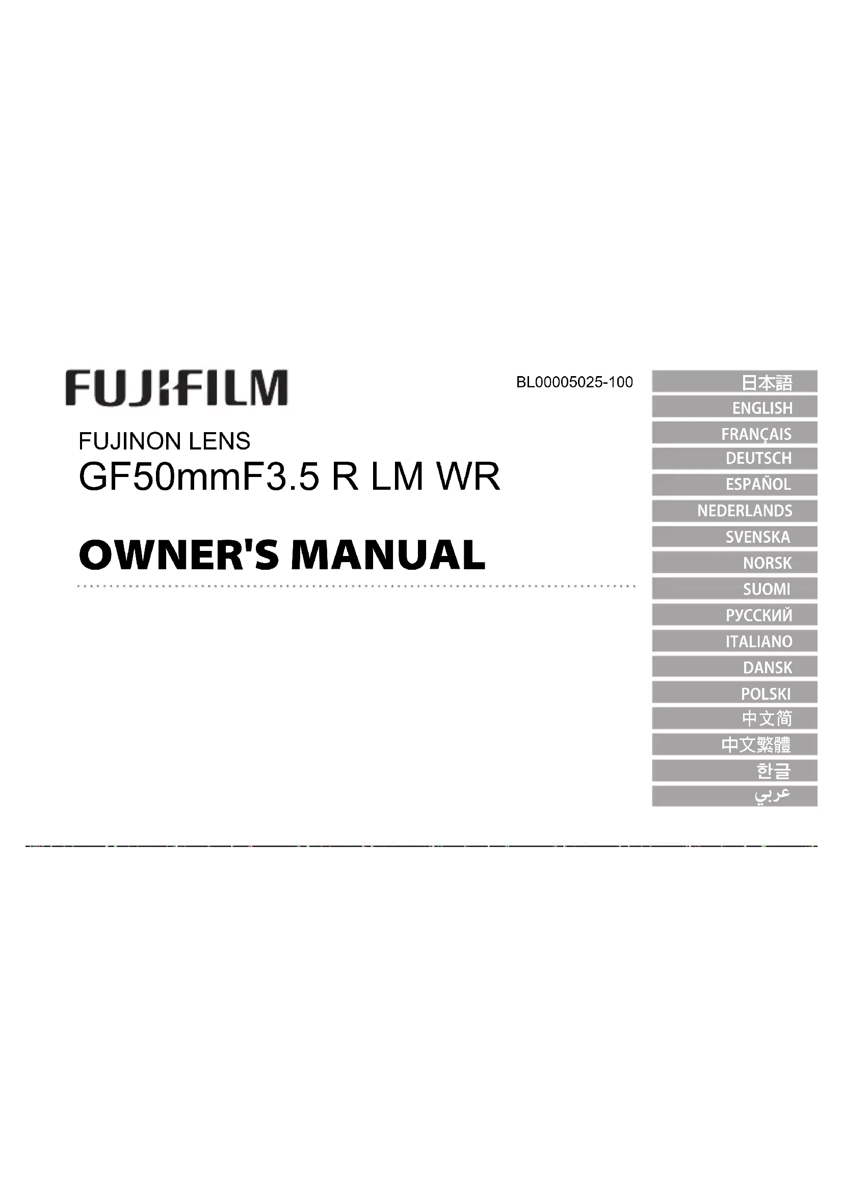 MODE D'EMPLOI Fujinon GF50mmF3.5 R LM WR FUJIFILM