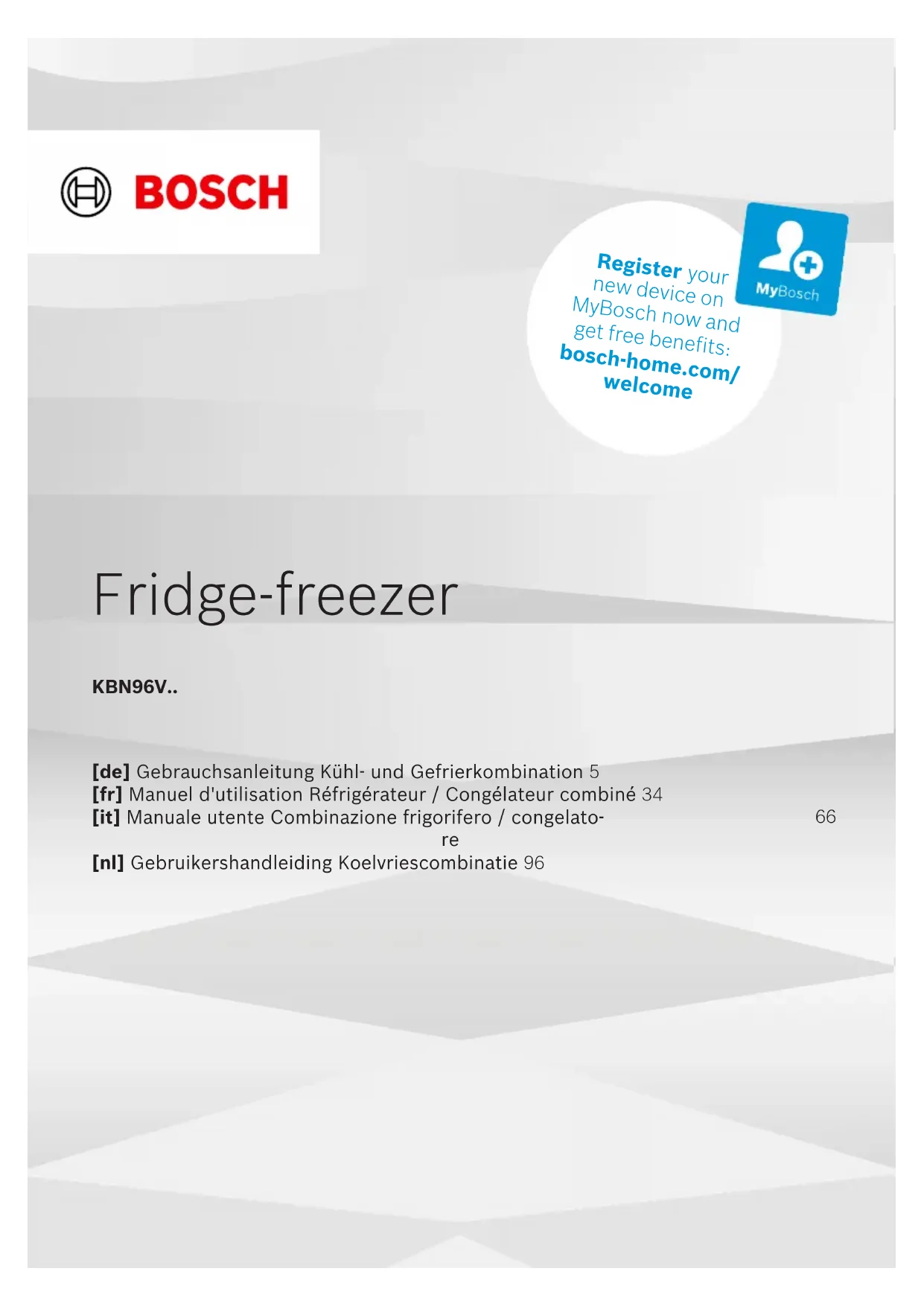 Retrouvez gratuitement la notice de l'appareil KBN96VFE0 BOSCH au format PDF.
