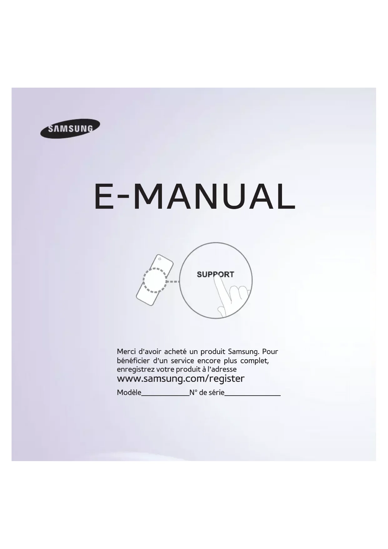 E-MANUAL Merci d’avoir acheté un produit Samsung. Pour bénécier d’un service encore plus complet, enregistrez votre produit à l’adresse www.samsung.com/register Modèle____________N° de série______________Menu Canal