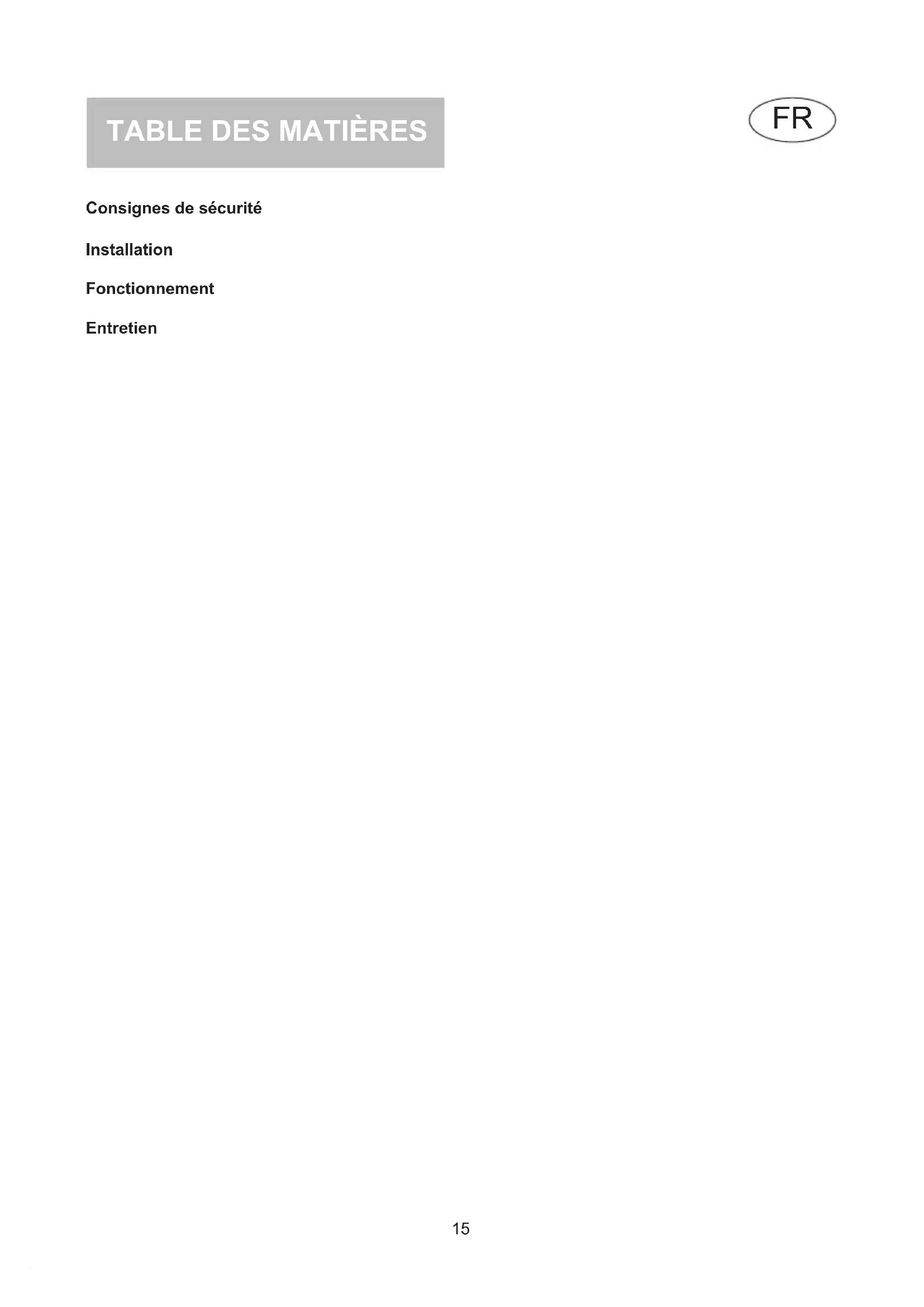 Consignes de sécurité Installation Fonctionnement Entretien