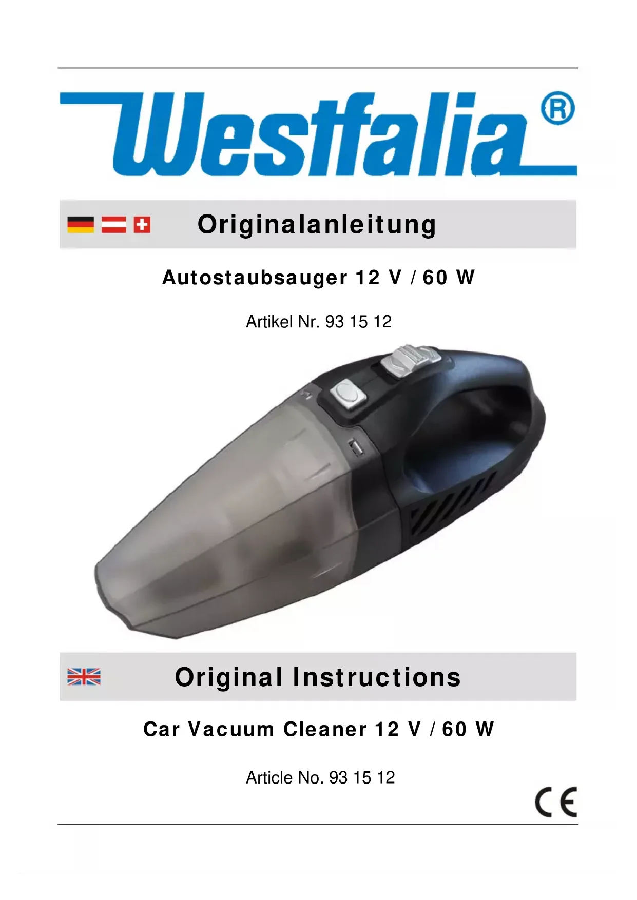 Retrouvez gratuitement la notice de l'appareil 931512 Westfalia au format PDF.