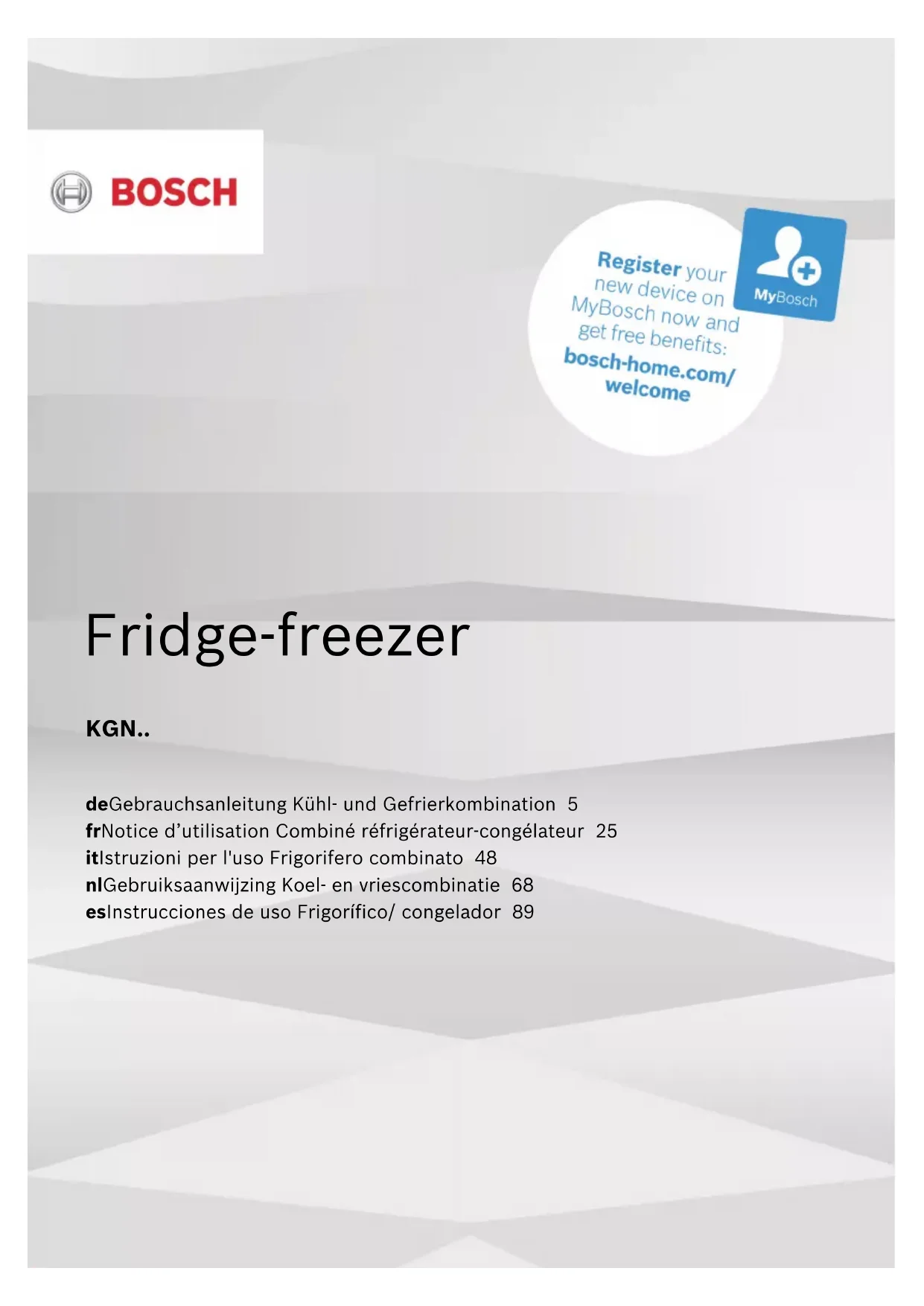 KGN34NLEB - Réfrigérateur BOSCH - Notice d'utilisation et mode d'emploi gratuit