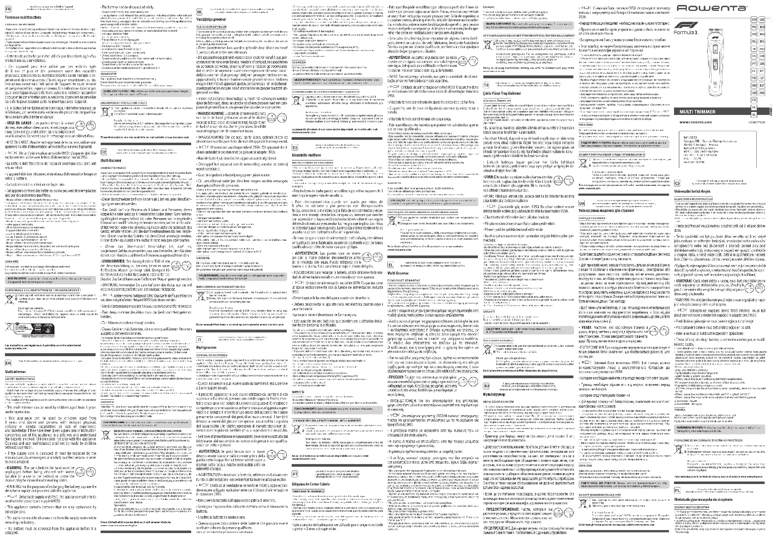 Selectium 10-in-1 Formula 1 TN944M - Tondeuse à barbe ROWENTA - Notice d'utilisation et mode d'emploi gratuit