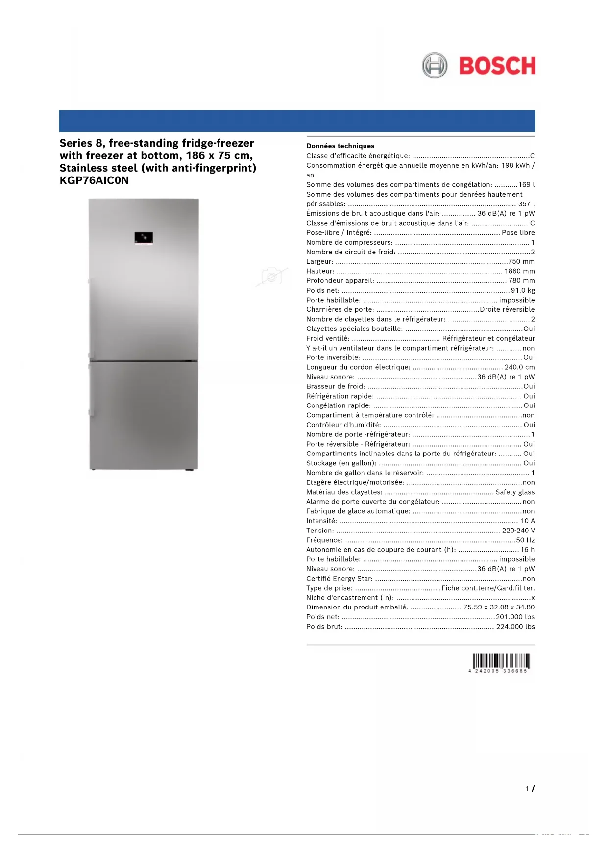 KGP76AIC0N - Réfrigérateur BOSCH - Notice d'utilisation et mode d'emploi gratuit