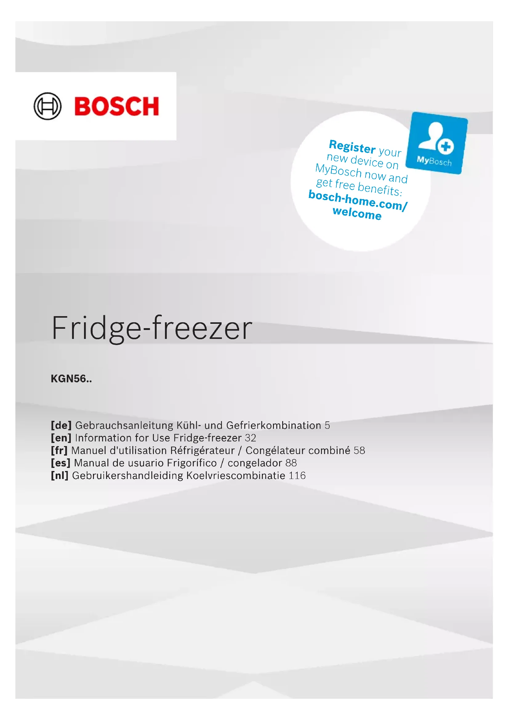 Retrouvez gratuitement la notice de l'appareil KGN56XIDR BOSCH au format PDF.