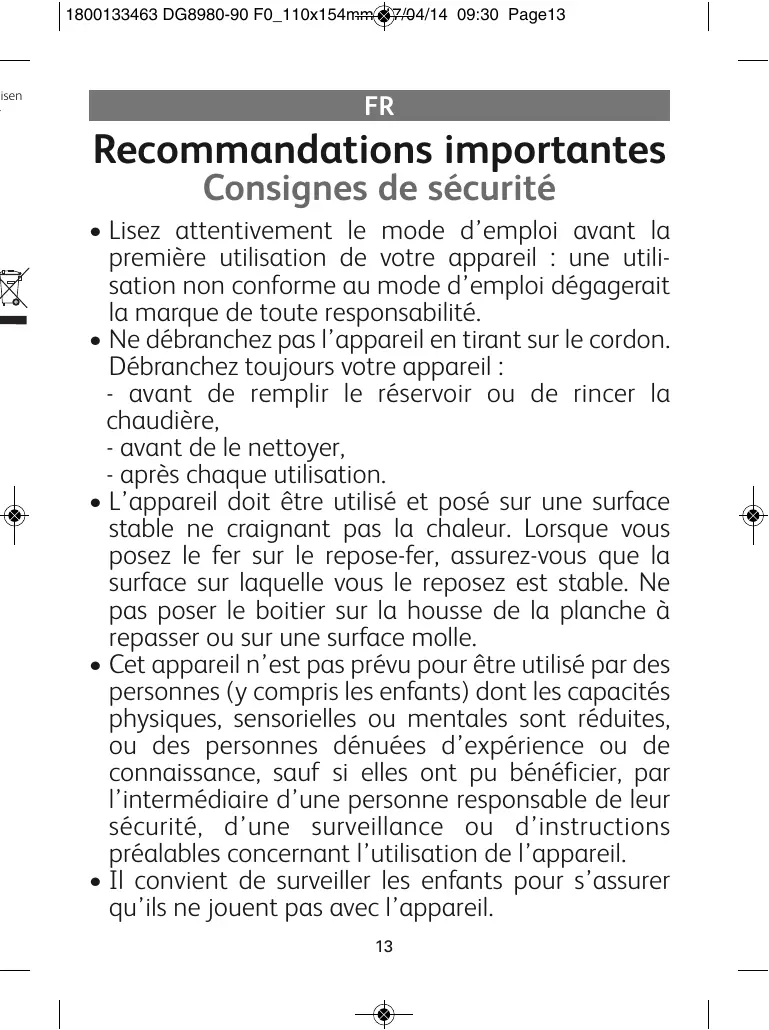 1800133463 DG8980-90 F0_110x154mm 17/04/14 09:33 Page187 1800133463 DG8980-90 F0_110x154mm 17/04/14 09:33 Page188 100% recyclé