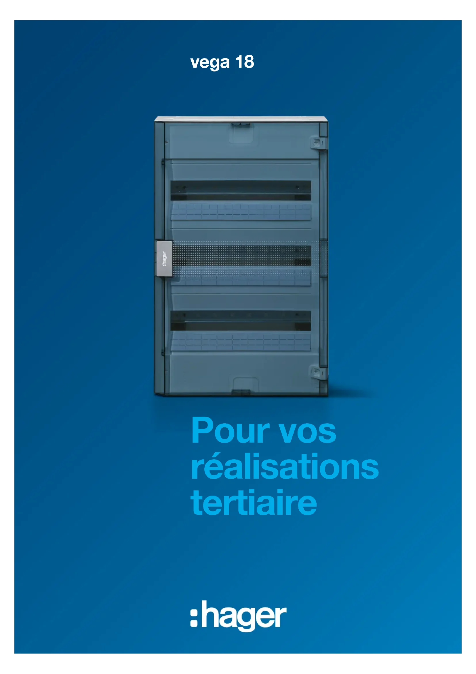 - porte transparente VZ310PVB VZ311PVB Coffrets vega saillies 1 à 4 rangées, 18 0 par rangée équipés de : - plaques passe-câbles amovibles en haut et en bas - châssis modulaire amovible - plastrons modulaires individuels - bornier de terre SanVis - bande de marquage - obturateurs - 1 bracelet guide fils par rangée modulaire Données communes : - IP 30 / IK 07 (sans porte) - IP 40 / IK 08 (avec porte) - classe II - entraxe rails DIN 150 mm Conformes selon - EN 61439-3 et EN 60670-24 - Résistances au fil incandescent 750 °C Portes transprentes et opaques équipés de : - fermeture sans clé ni outil - porte planConception/réalisation Hager SAS - 132 boulevard d’Europe – F-67210 OBERNAI Imprimé en France – Illustrations non contractuelles – crédits photos : Fotolia - Lena Burmann - SPW Hager SAS 132 boulevard d‘Europe BP 78 - 67212 OBERNAI Cedex hager.fr QZD734aF17