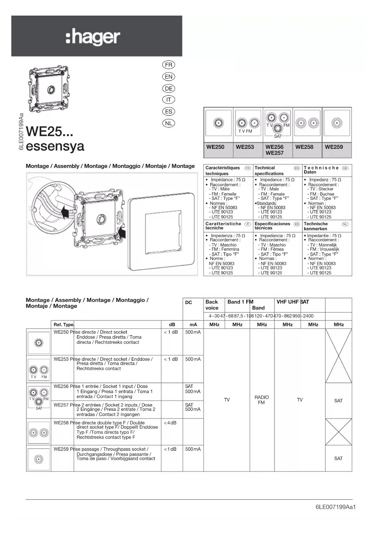 WE250 - Prise murale HAGER - Notice d'utilisation et mode d'emploi gratuit