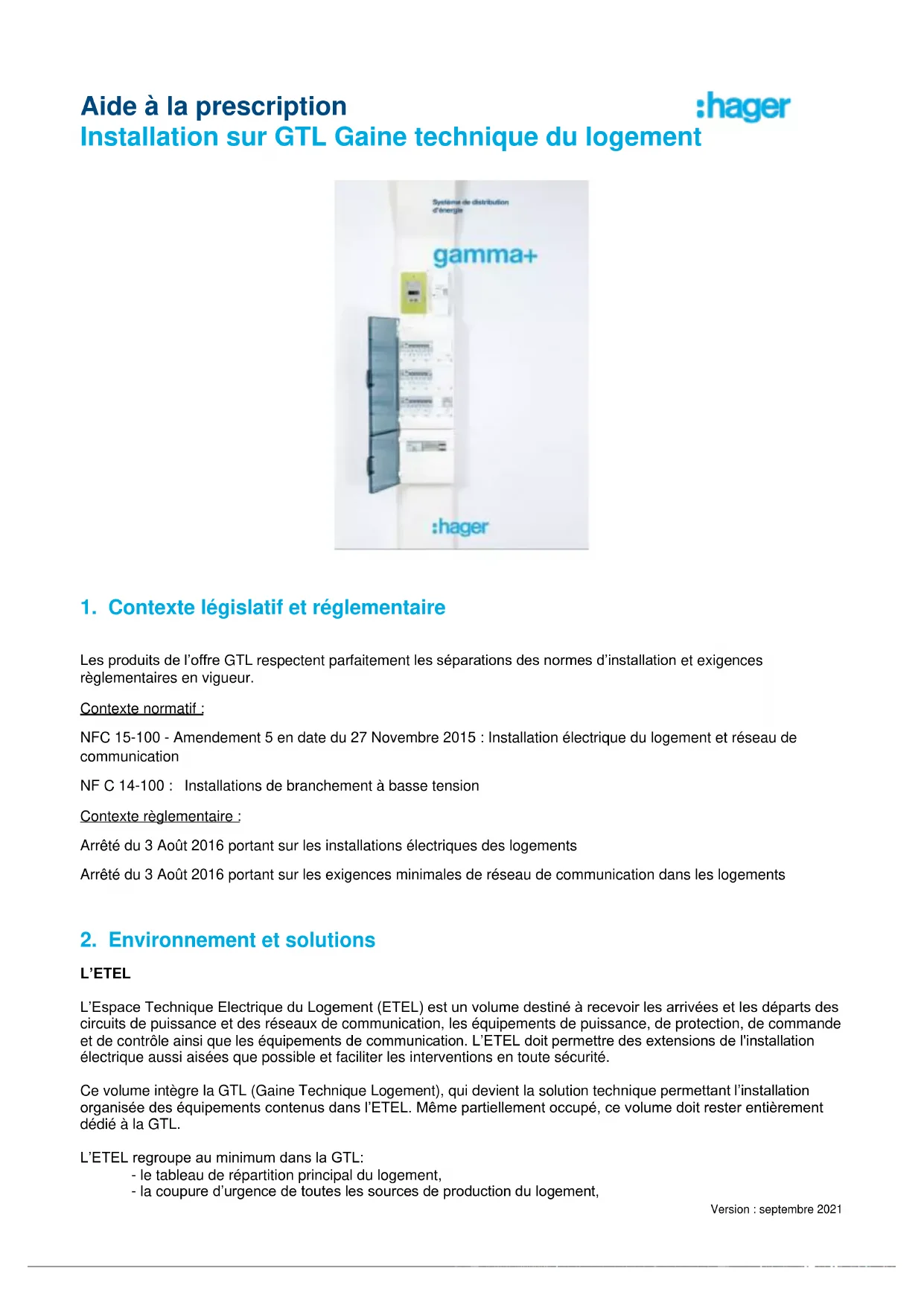 Aide à la prescription Installation sur GTL Gaine technique du logement Version : septembre 2021