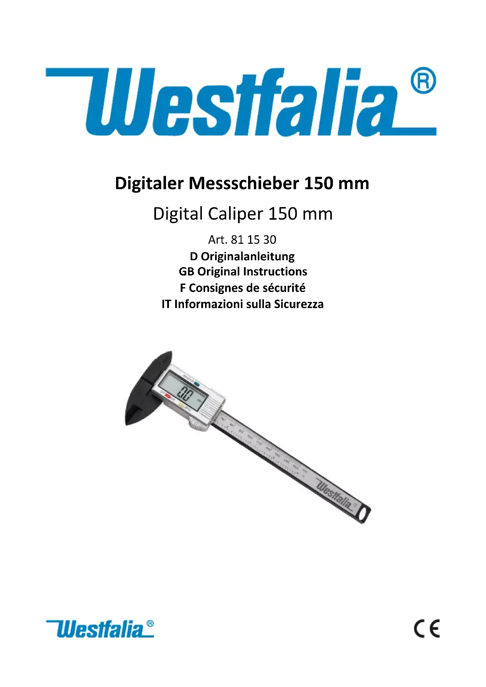 811530 - équipements de mesure Westfalia - Notice d'utilisation et mode d'emploi gratuit
