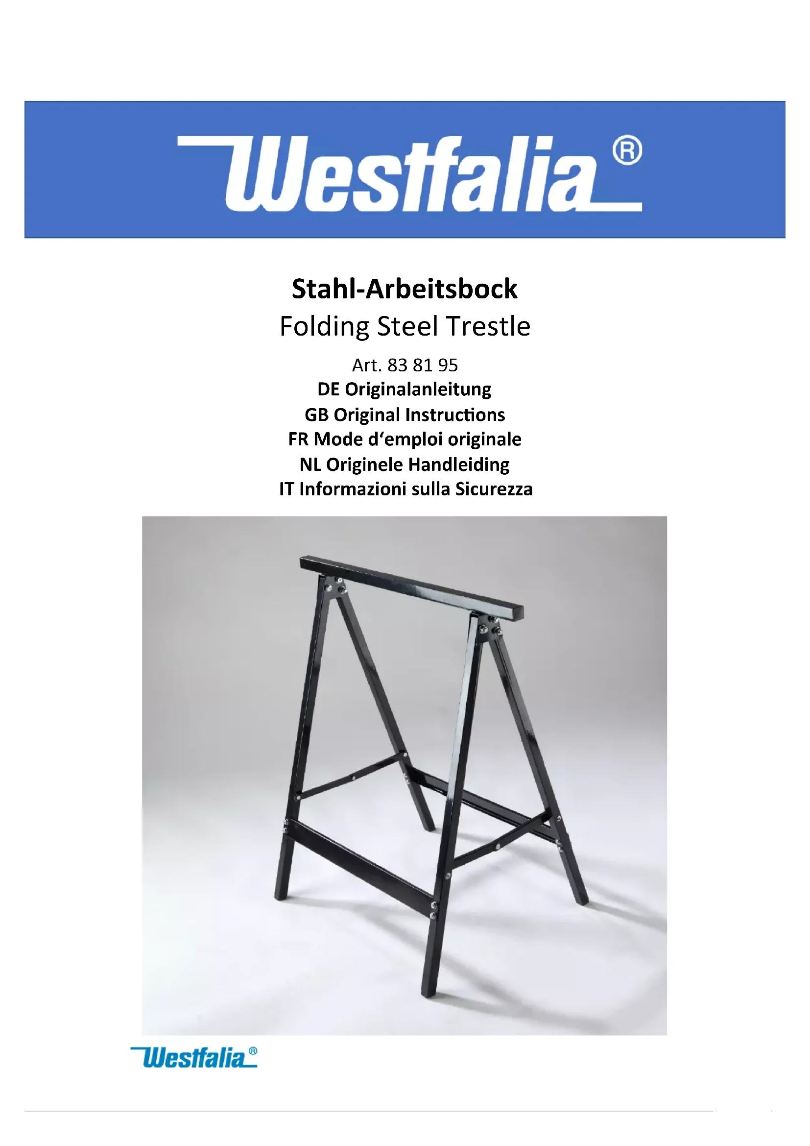 Retrouvez gratuitement la notice de l'appareil 838195 Westfalia au format PDF.