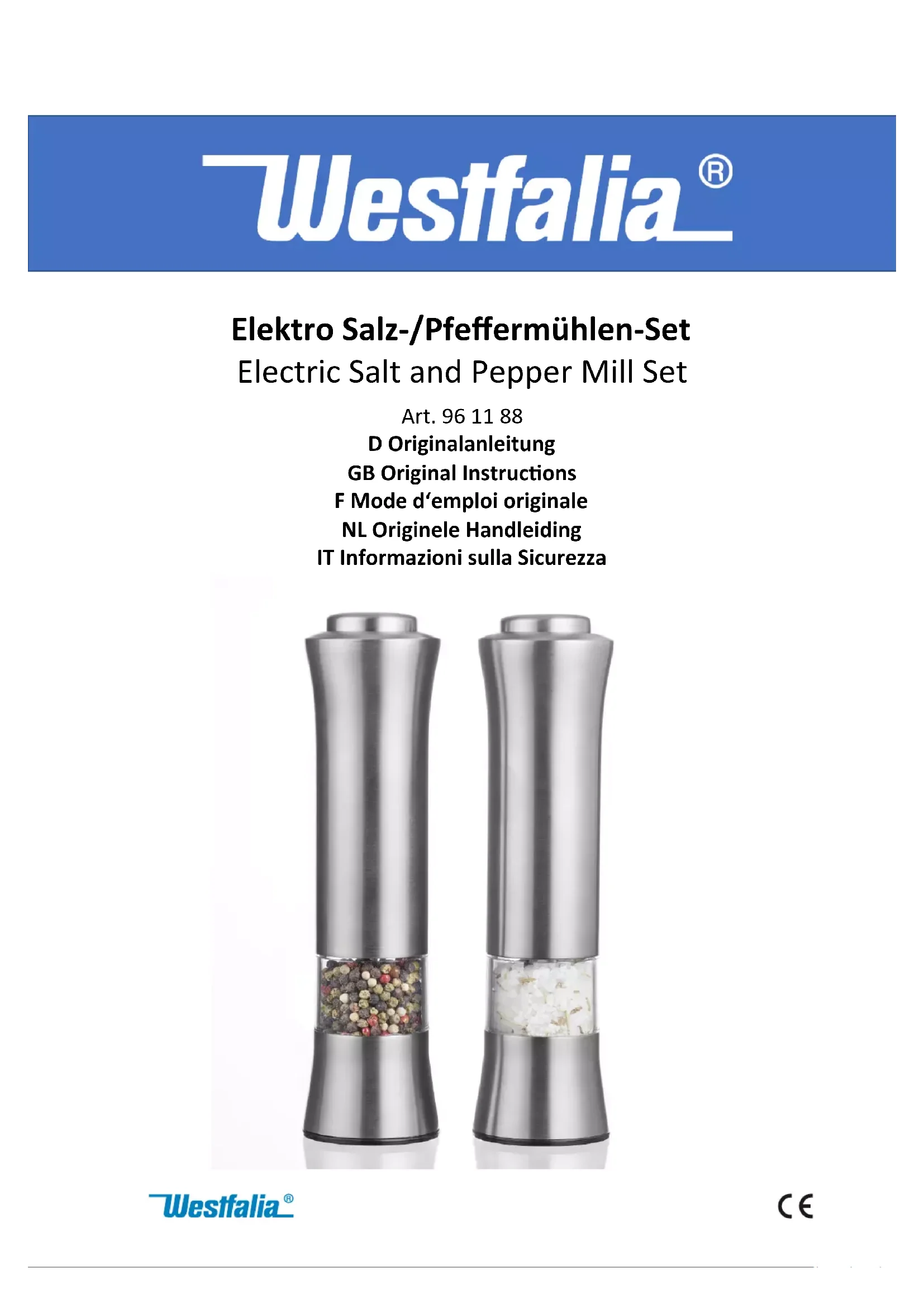 961188 - Moulin à sel/poivre Westfalia - Notice d'utilisation et mode d'emploi gratuit