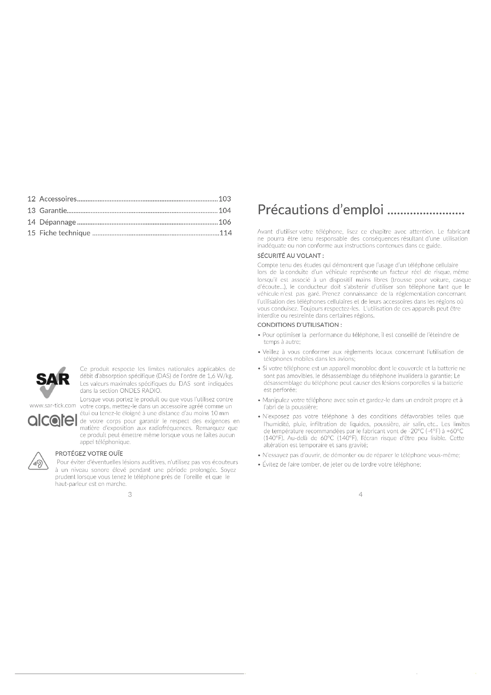 - Pour en savoir plus sur les façons d'utiliser ce téléphone, veuillez consulter le site www. alcatelonetouch.us et télécharger le guide de l'utilisateur.1 2 Table des matières Précautions d’emploi p. 4