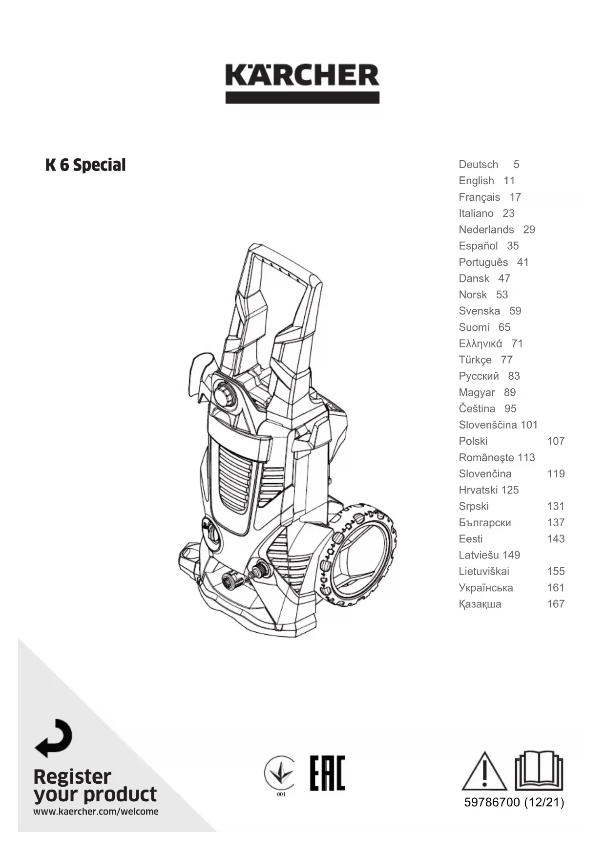 Retrouvez gratuitement la notice de l'appareil K 6 Special Kärcher au format PDF.