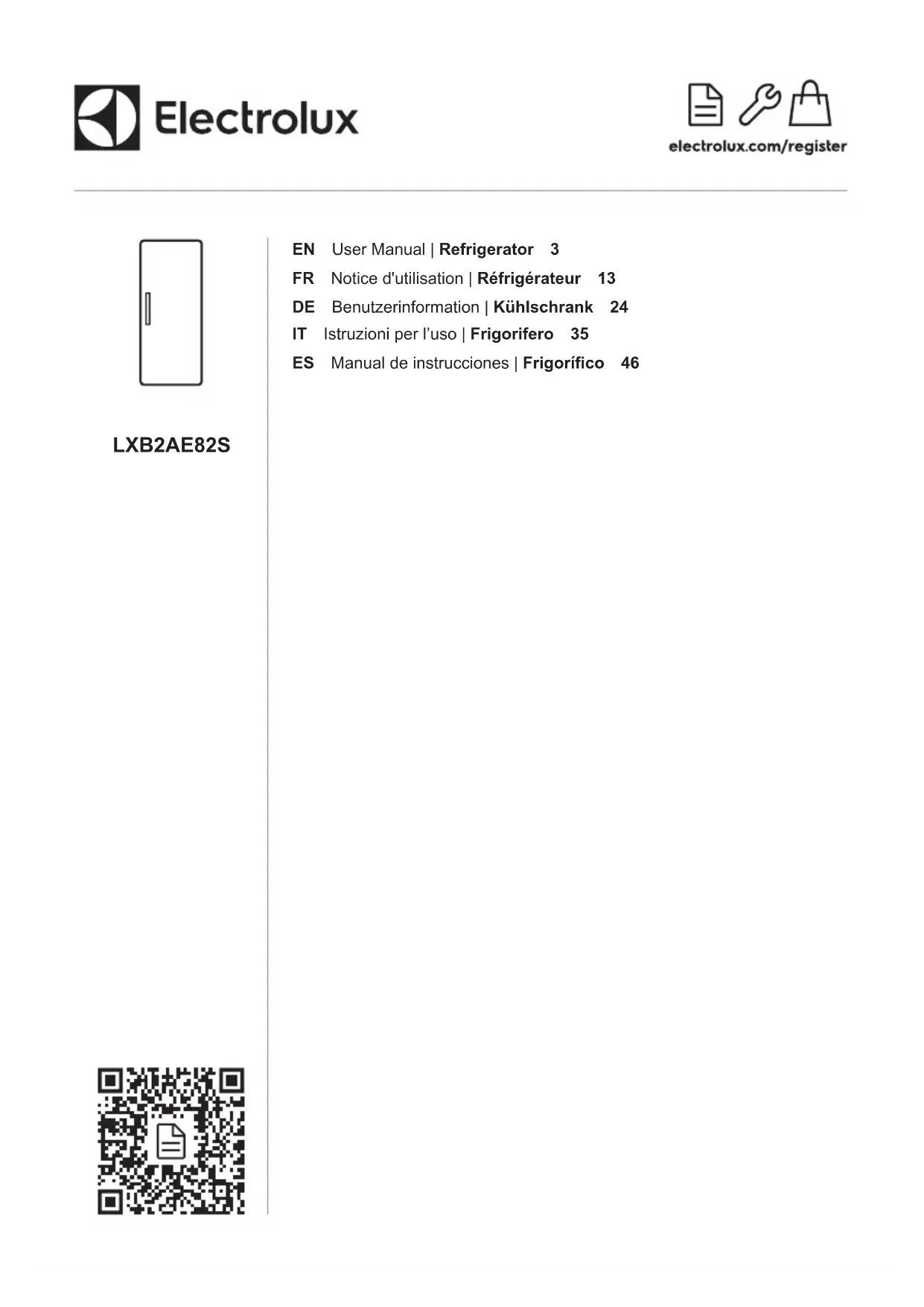 LXB2AE82S - Réfrigérateur ELECTROLUX - Notice d'utilisation et mode d'emploi gratuit