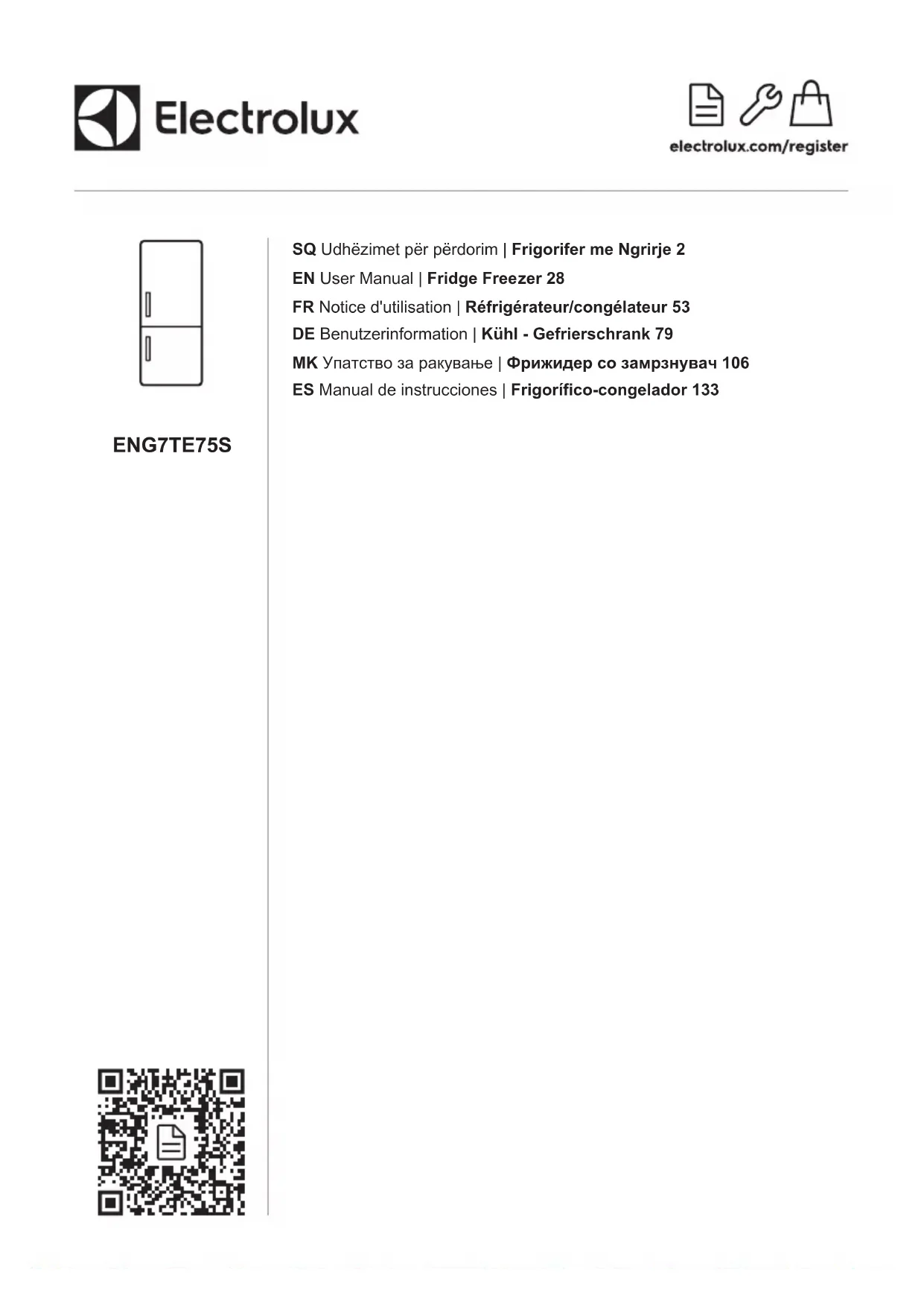 ENG7TE75S - Congélateur ELECTROLUX - Notice d'utilisation et mode d'emploi gratuit