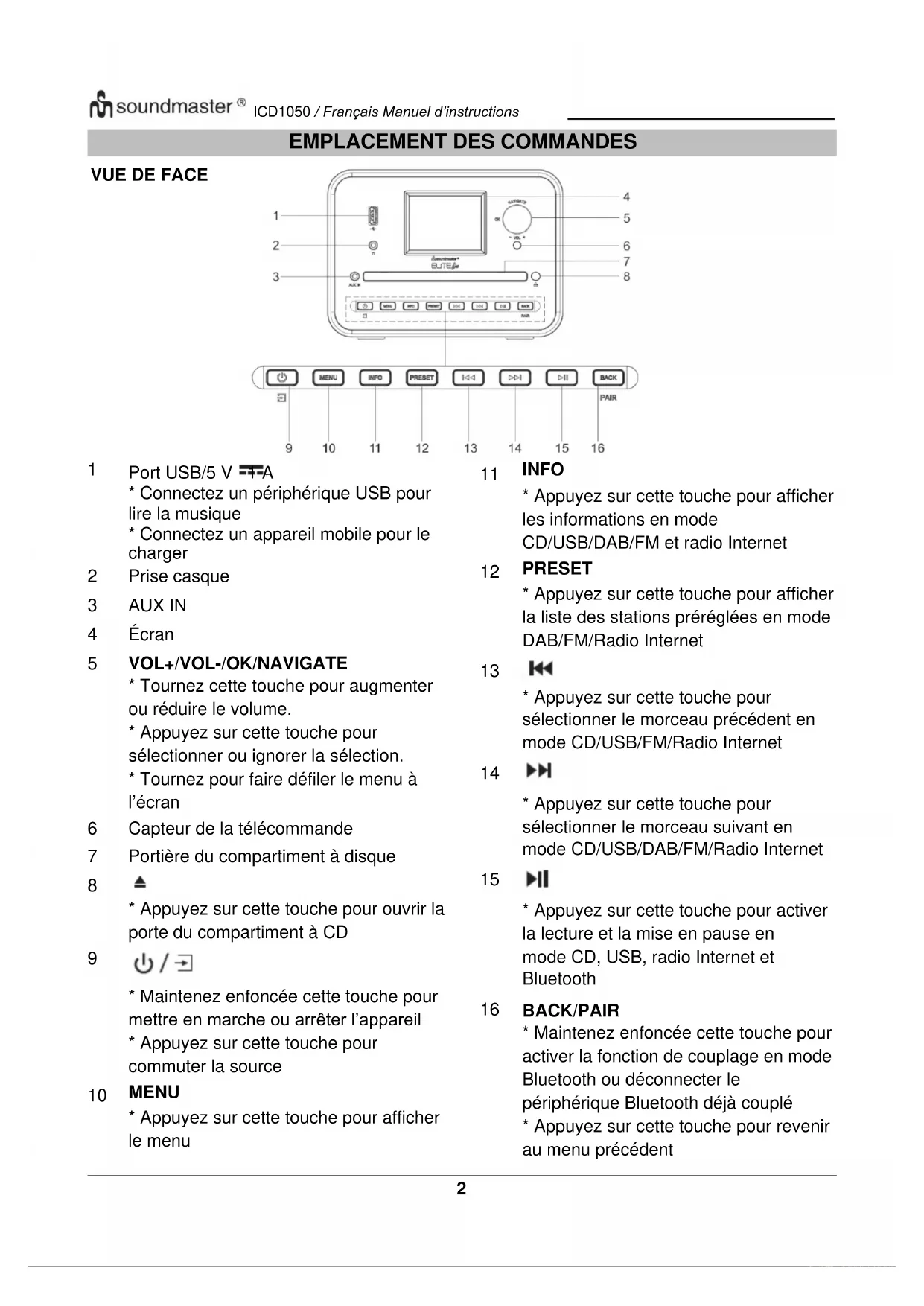 MODE D'EMPLOI ICD1050 Soundmaster