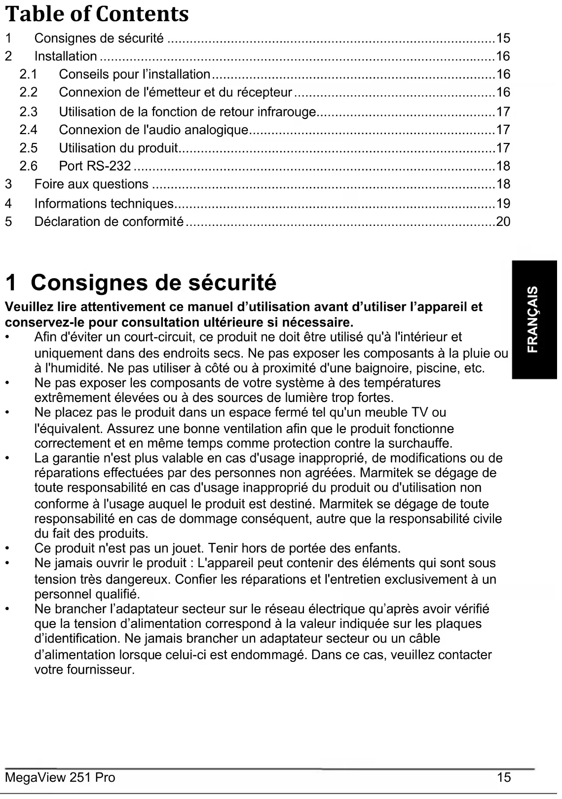- La portée dépend également de la télécommande utilisée. Avez-vous des questions dont les réponses ne figurent pas ci-dessus ? Veuillez consulter le site www.marmitek.com.MegaView 251 Pro