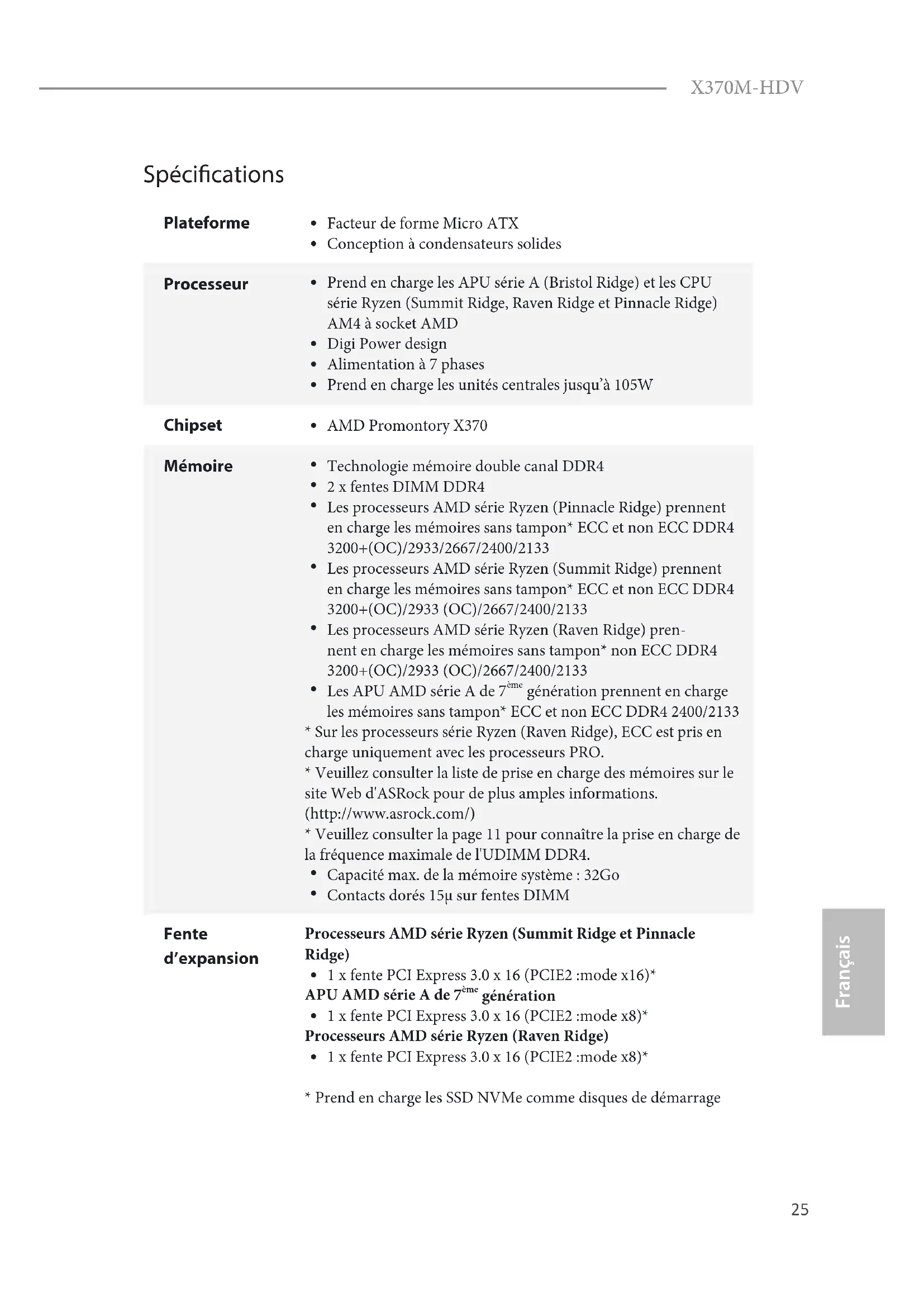 X370M-HDV - Carte mère ASROCK - Notice d'utilisation et mode d'emploi gratuit