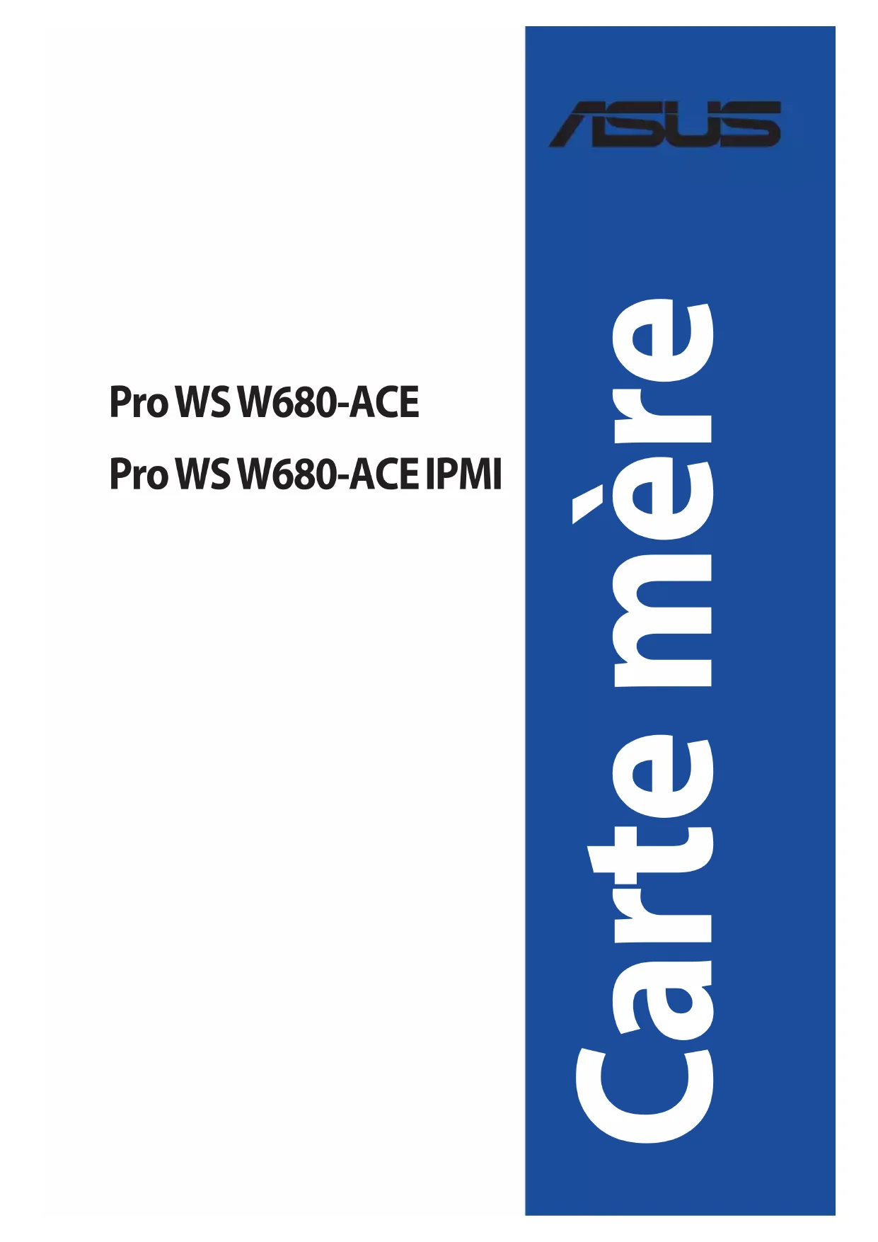 Carte mère Pro WS W680-ACE Pro WS W680-ACE IPMIii F21247 Première Édition Octobre 2022 Copyright © 2022 ASUSTeK COMPUTER INC. Tous droits réservés. Aucun extrait de ce manuel, incluant les produits et logiciels qui y sont décrits, ne peut être reproduit, transmis, transcrit, stocké dans un système de restitution, ou traduit dans quelque langue que ce soit sous quelque forme ou quelque moyen que ce soit, à l'exception de la documentation conservée par l'acheteur dans un but de sauvegarde, sans la permission écrite expresse de ASUSTeK COMPUTER INC. (“ASUS”). La garantie sur le produit ou le service ne sera pas prolongée si (1) le produit est réparé, modifié ou altéré, à moins que cette réparation, modification ou altération ne soit autorisée par écrit par ASUS ; ou (2) si le numéro de série du produit est dégradé ou manquant. ASUS fournit ce manuel "en l'état" sans garantie d'aucune sorte, explicite ou implicite, y compris, mais non limité aux garanties implicites ou aux conditions de commerciabilité ou d'adéquation à un but particulier. En aucun cas ASUS, ses directeurs, ses cadres, ses employés ou ses agents ne peuvent être tenus responsables des dégâts indirects, spéciaux, accidentels ou consécutifs (y compris les dégâts pour manque à gagner, pertes de profits, perte de jouissance ou de données, interruption professionnelle ou assimilé), même si ASUS a été prévenu de la possibilité de tels dégâts découlant de tout défaut ou erreur dans le présent manuel ou produit. Les spécifications et les informations contenues dans ce manuel sont fournies à titre indicatif seulement et sont sujettes à des modifications sans préavis, et ne doivent pas être interprétées comme un engagement de la part d'ASUS. ASUS n'est en aucun cas responsable d'éventuelles erreurs ou inexactitudes présentes dans ce manuel, y compris les produits et les logiciels qui y sont décrits. Les noms des produits et des sociétés qui apparaissent dans le présent manuel peuvent être, ou non, des marques commerciales déposées, ou sujets à copyrights pour leurs sociétés respectives, et ne sont utilisés qu'à des fins d'identification ou d'explication, et au seul bénéfice des propriétaires, sans volonté d'infraction.iii Table des matières Consignes de sécurité ................................................................................................................v À propos de ce manuel .............................................................................................................vi Résumé des caractéristiques de la Pro WS W680-ACE .......................................................... vii Contenu de la boîte .................................................................................................................. xii