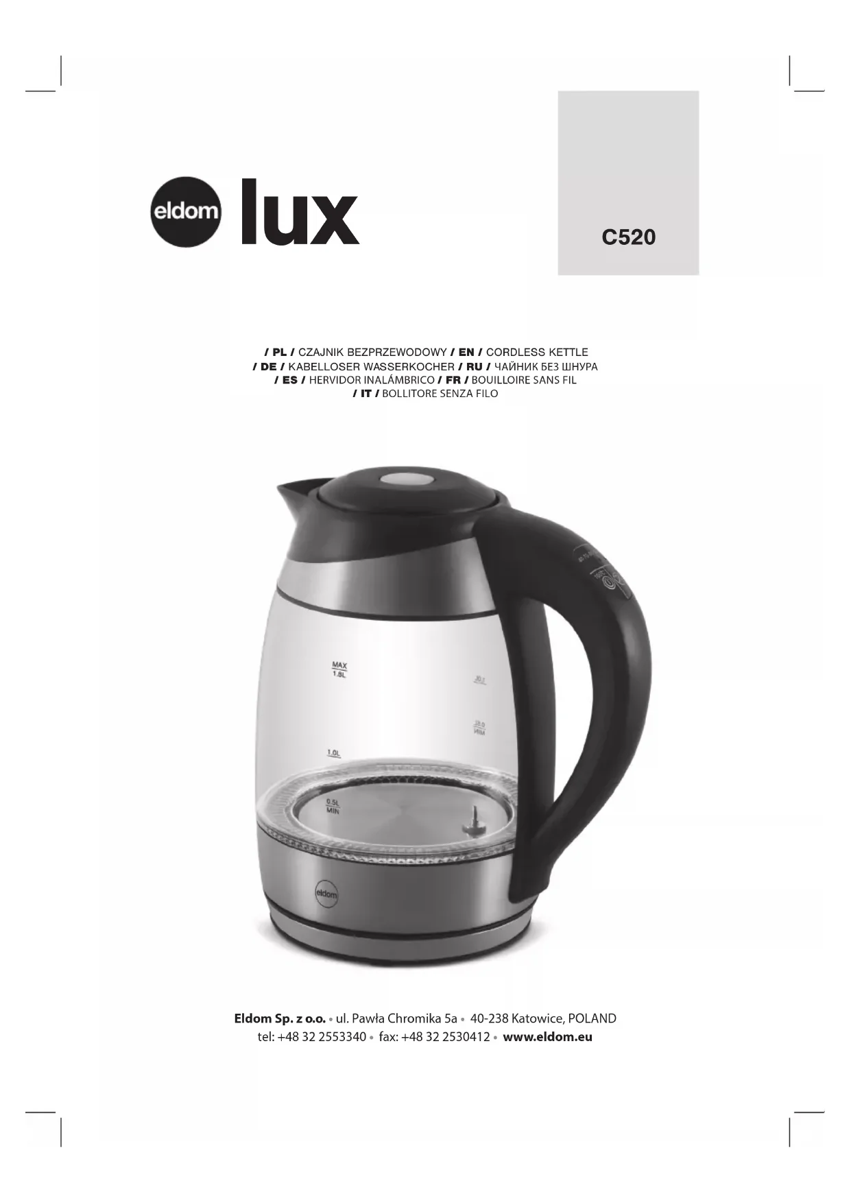 Lux C520 - Bouilloire Eldom - Notice d'utilisation et mode d'emploi gratuit