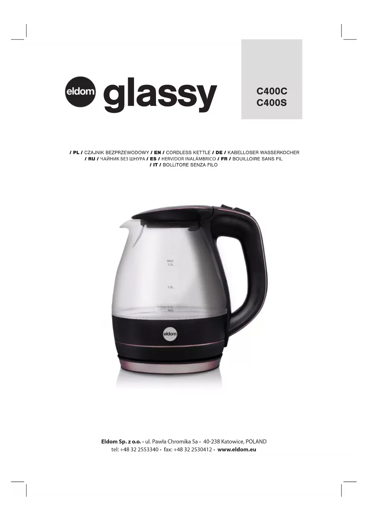 Glassy C400C - Bouilloire Eldom - Notice d'utilisation et mode d'emploi gratuit