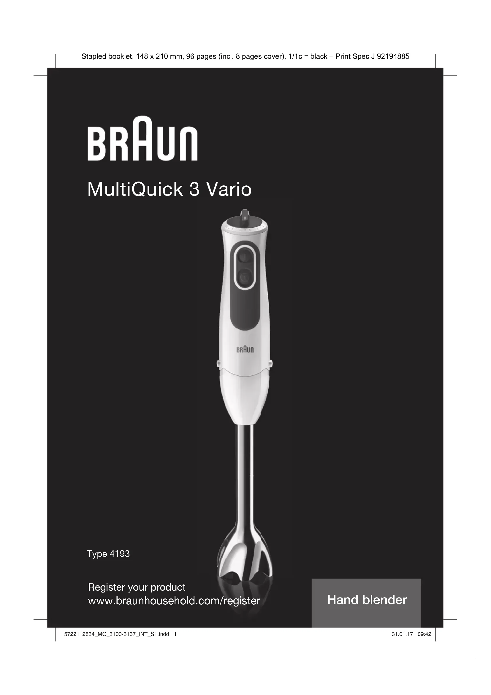 MultiQuick 3 Vario - Blender BRAUN - Notice d'utilisation et mode d'emploi gratuit