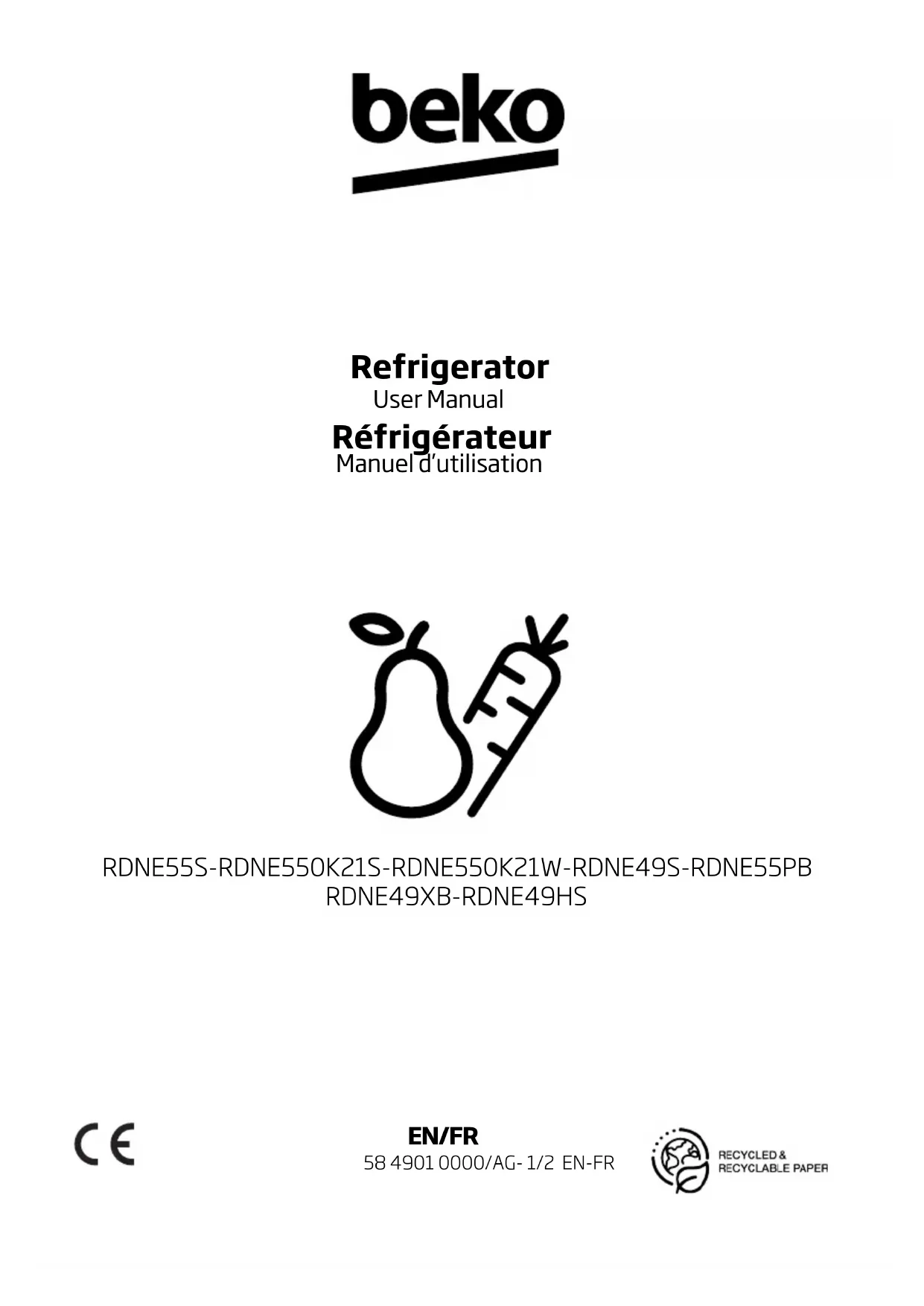 RDNE49HS - Réfrigérateur BEKO - Notice d'utilisation et mode d'emploi gratuit
