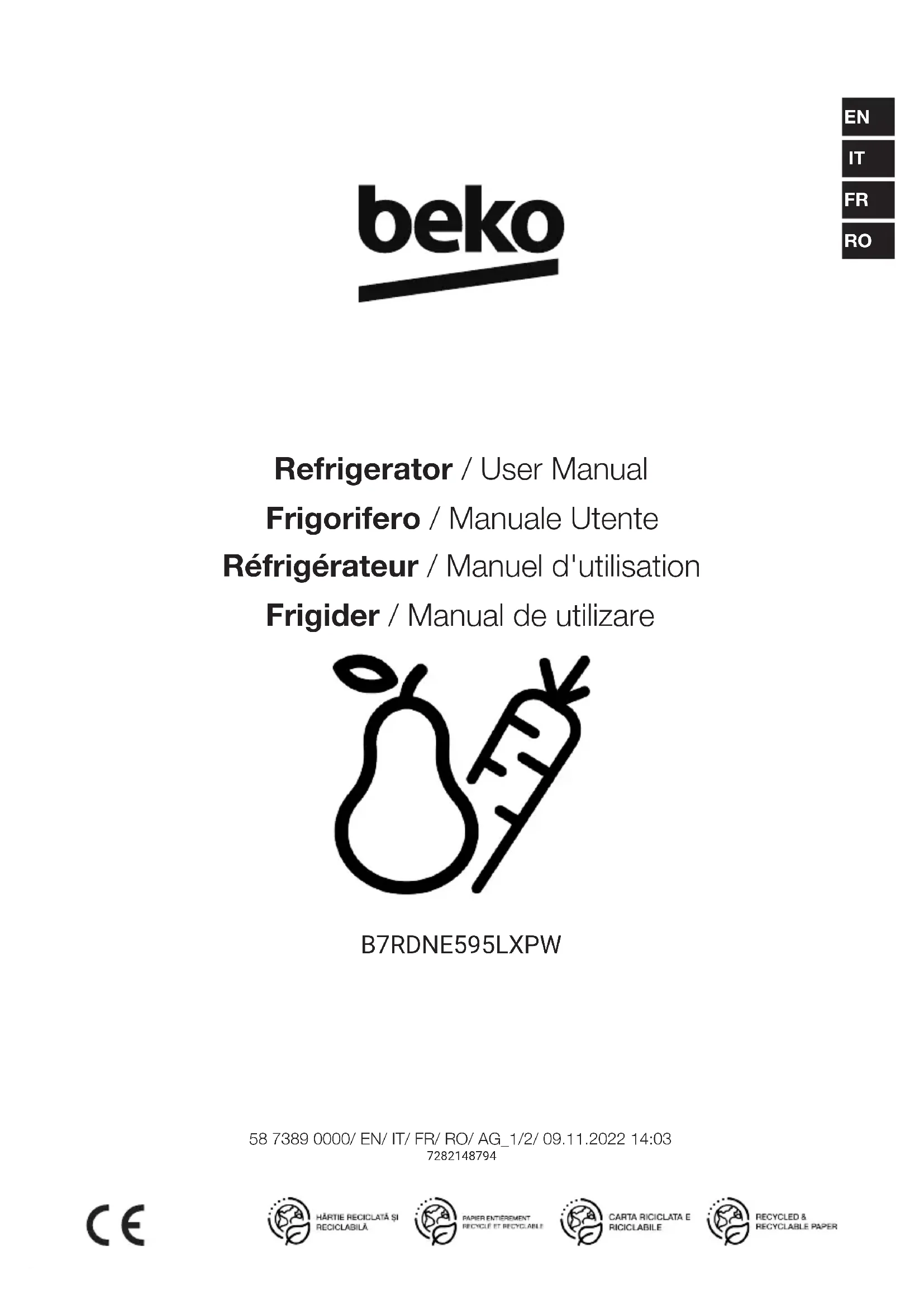 B7RDNE595LXPW - Réfrigérateur BEKO - Notice d'utilisation et mode d'emploi gratuit