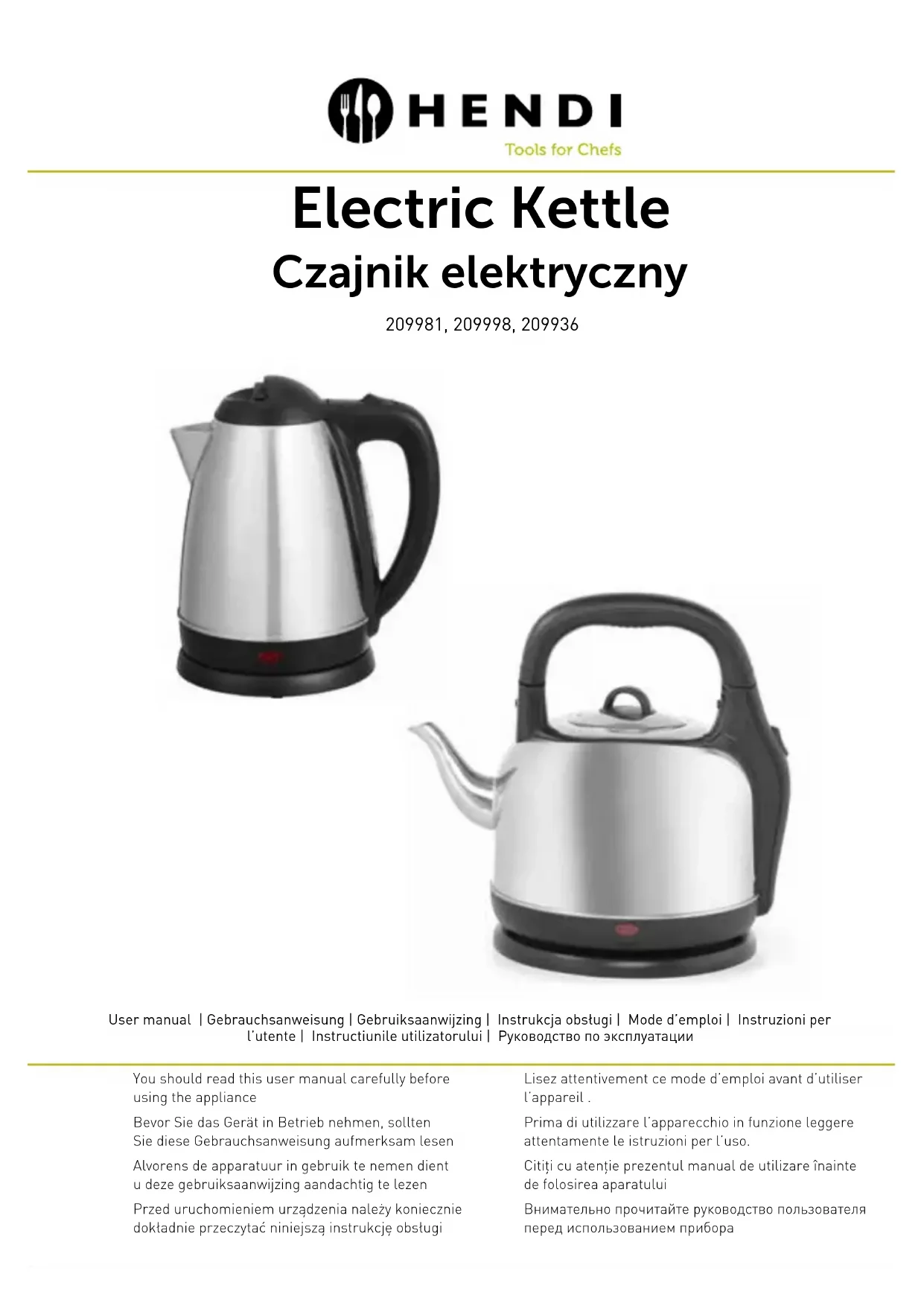 209936 - Bouilloire Hendi - Notice d'utilisation et mode d'emploi gratuit