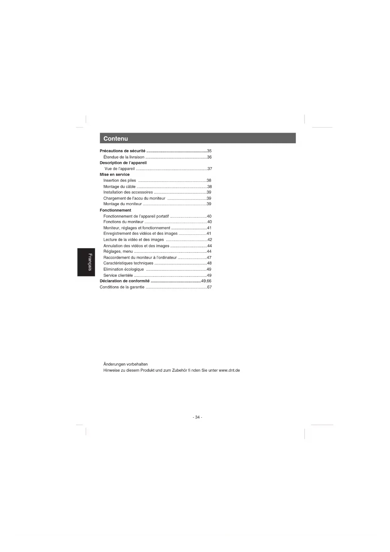- ,66 Conditions de la garantie Änderungen vorbehalten Hinweise zu diesem Produkt und zum Zubehör fi nden Sie unter www.dnt.deFrançais p. 67