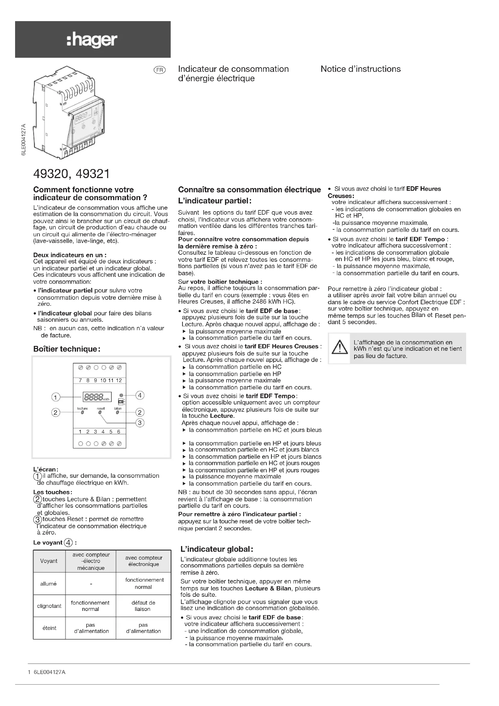 Retrouvez gratuitement la notice de l'appareil 49320 HAGER au format PDF.
