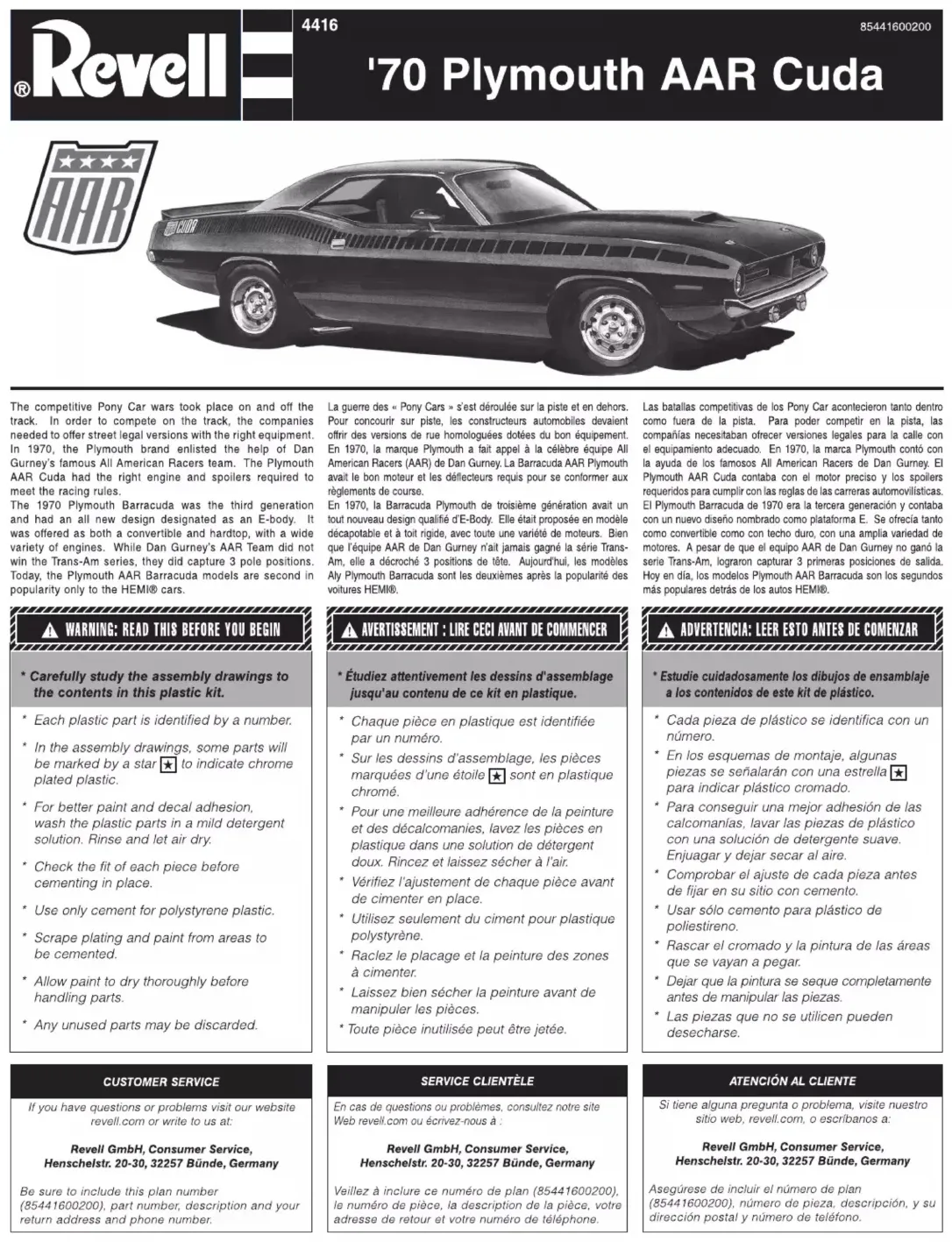 Retrouvez gratuitement la notice de l'appareil '70 Plymouth AAR Cuda Revell au format PDF.