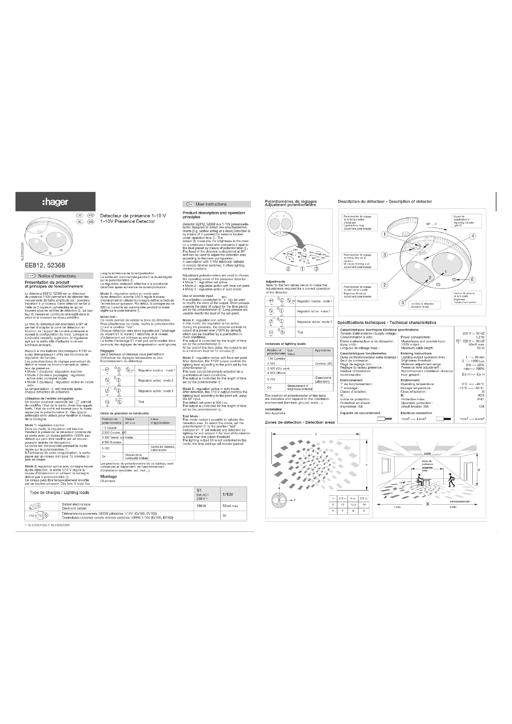 EE812 - Détecteur de mouvement HAGER - Notice d'utilisation et mode d'emploi gratuit