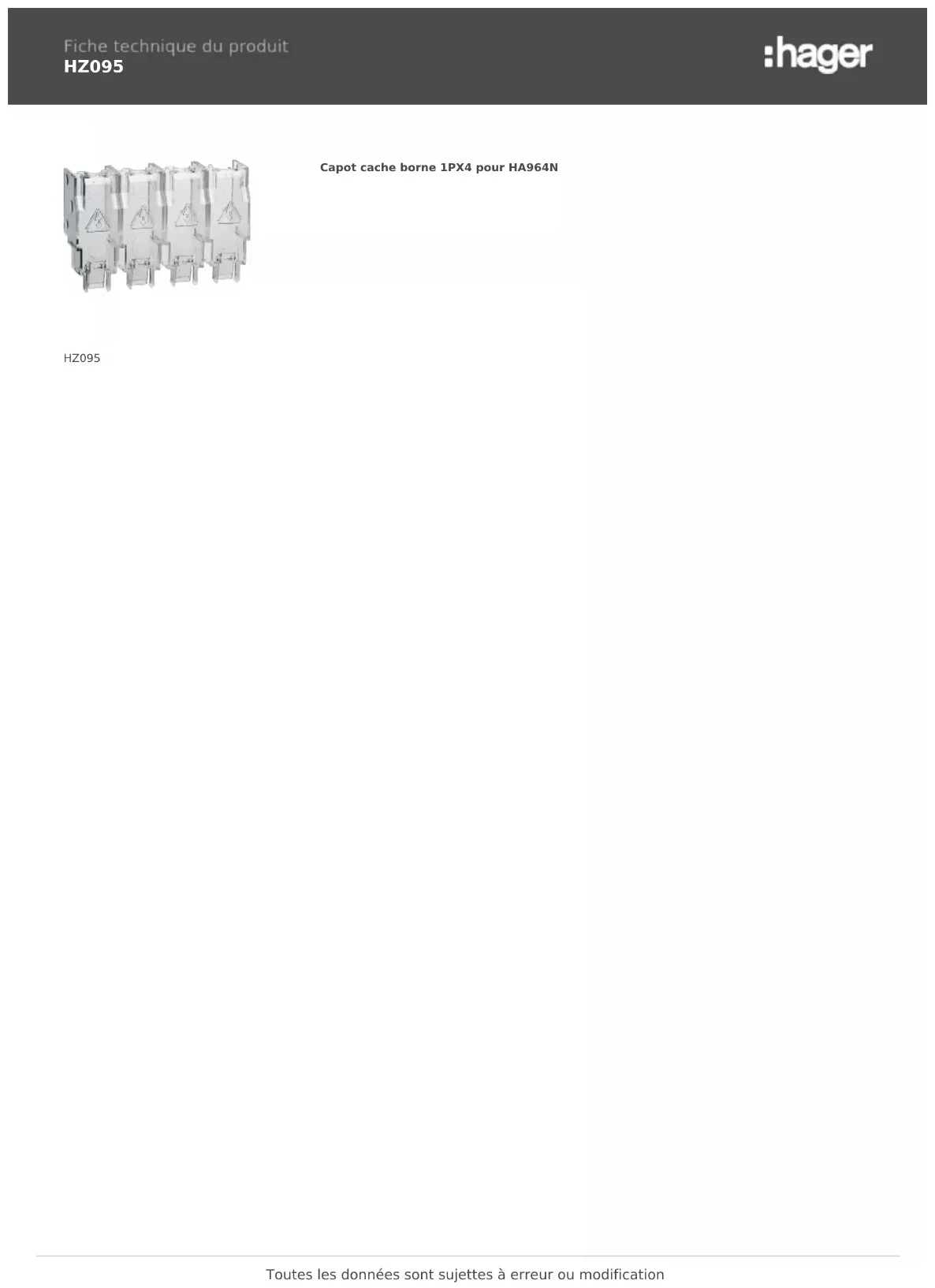 HZ095 HZ095 Capot cache borne 1PX4 pour HA964N Toutes les données sont sujettes à erreur ou modification