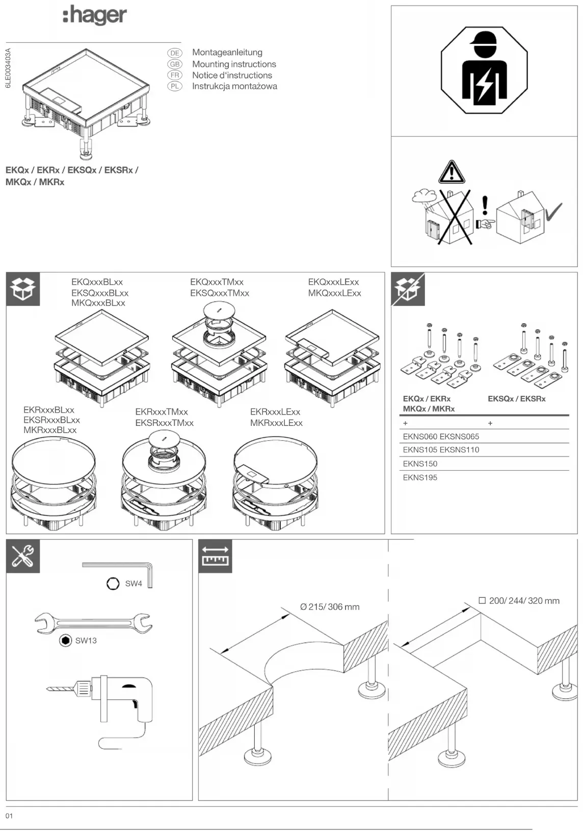 nement ou à la santé humaine. Vous permettez ainsi une réutilisation durable des ressources matérielles. Les utilisateurs privés sont priés de se renseigner sur l’élimination écologique du produit, soit auprès du revendeur chez qui ils ont acquis le produit, soit auprès des autorités locales. Les utilisateurs professionnels sont priés de s’adresser à leur fournisseurs et de contrôler les conditions générales de ventes du contrat de vente. Ce produit ne doit pas être éliminé avec d’autres déchets industriels. Hager Electro GmbH & Co. KG, Zum Gunterstal, 66440 Blieskastel, Germany06 m Wskazówki bezpieczeń- stwa Niezakryte otwory montażowe iotwarte ramy kaset mogą stwarzać niebezpieczeń- stwo wypadku, należy stosować pokrywy montażowe lub inne odpowiednie pokrywy. Niebezpieczeństwo zacięcia krawędziami blachy! Uwaga!
