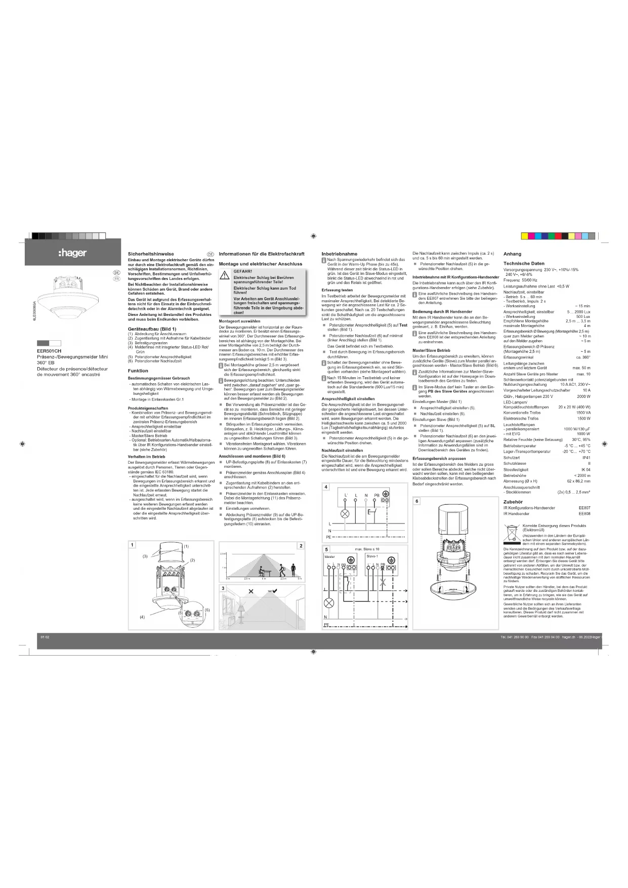 EER501CH - Détecteur de mouvement HAGER - Notice d'utilisation et mode d'emploi gratuit