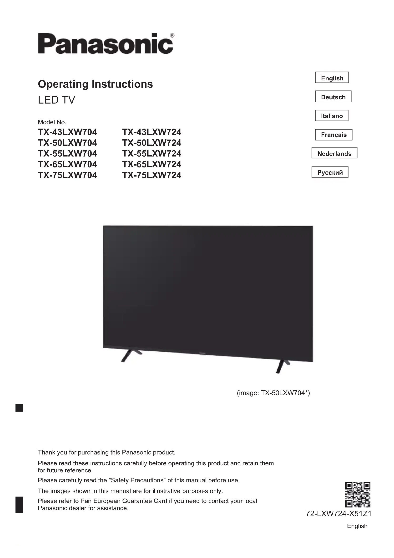 TX-55LXW724 - Téléviseur PANASONIC - Notice d'utilisation et mode d'emploi gratuit