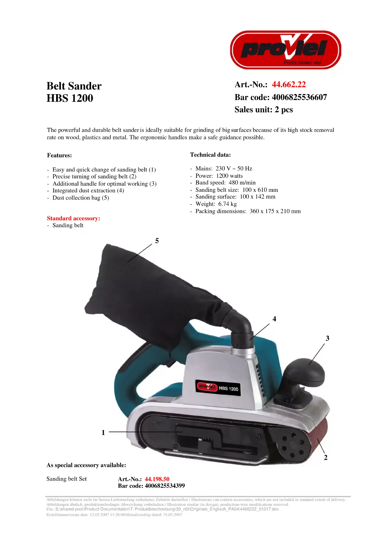 HBS 1200 - Ponceuse Proviel - Notice d'utilisation et mode d'emploi gratuit