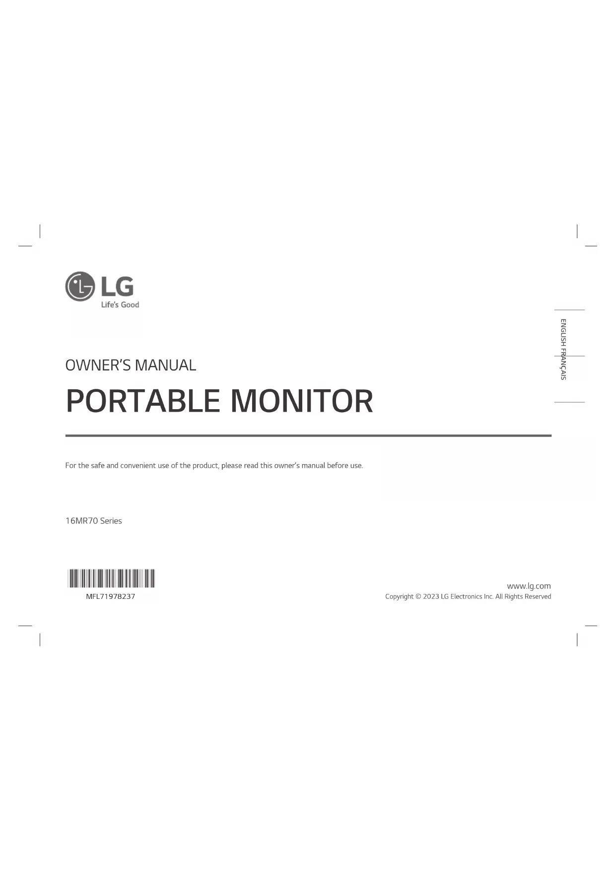 - MONITEUR PORTABLE Pour une utilisation sûre et pratique du produit, veuillez lire ce manuel du propriétaire avant de l’utiliser. www.lg.com Copyright © 2023 LG Electronics Inc. Tous droits réservés FRANÇAIS1 Consignes de sécurité importantes FRANÇAIS Consignes de sécurité importantes p. 1