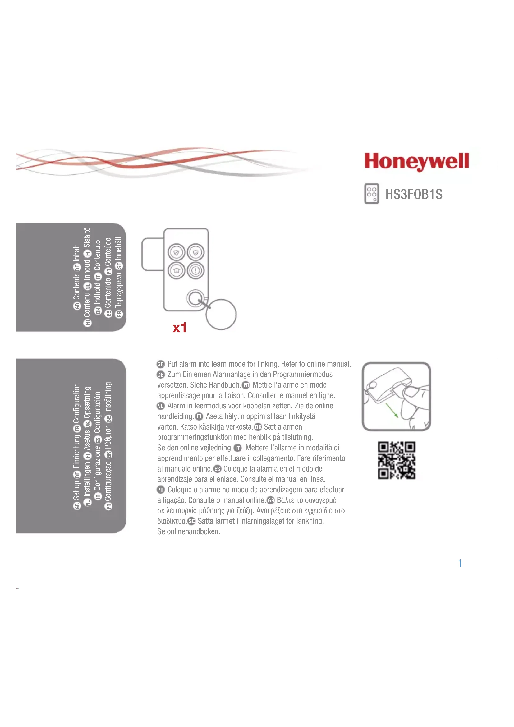 Retrouvez gratuitement la notice de l'appareil HS3FOB1S HONEYWELL au format PDF.