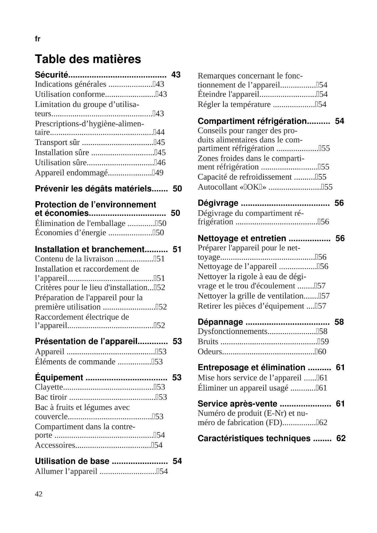 - Caractéristiques techniques Sécurité fr p. 62